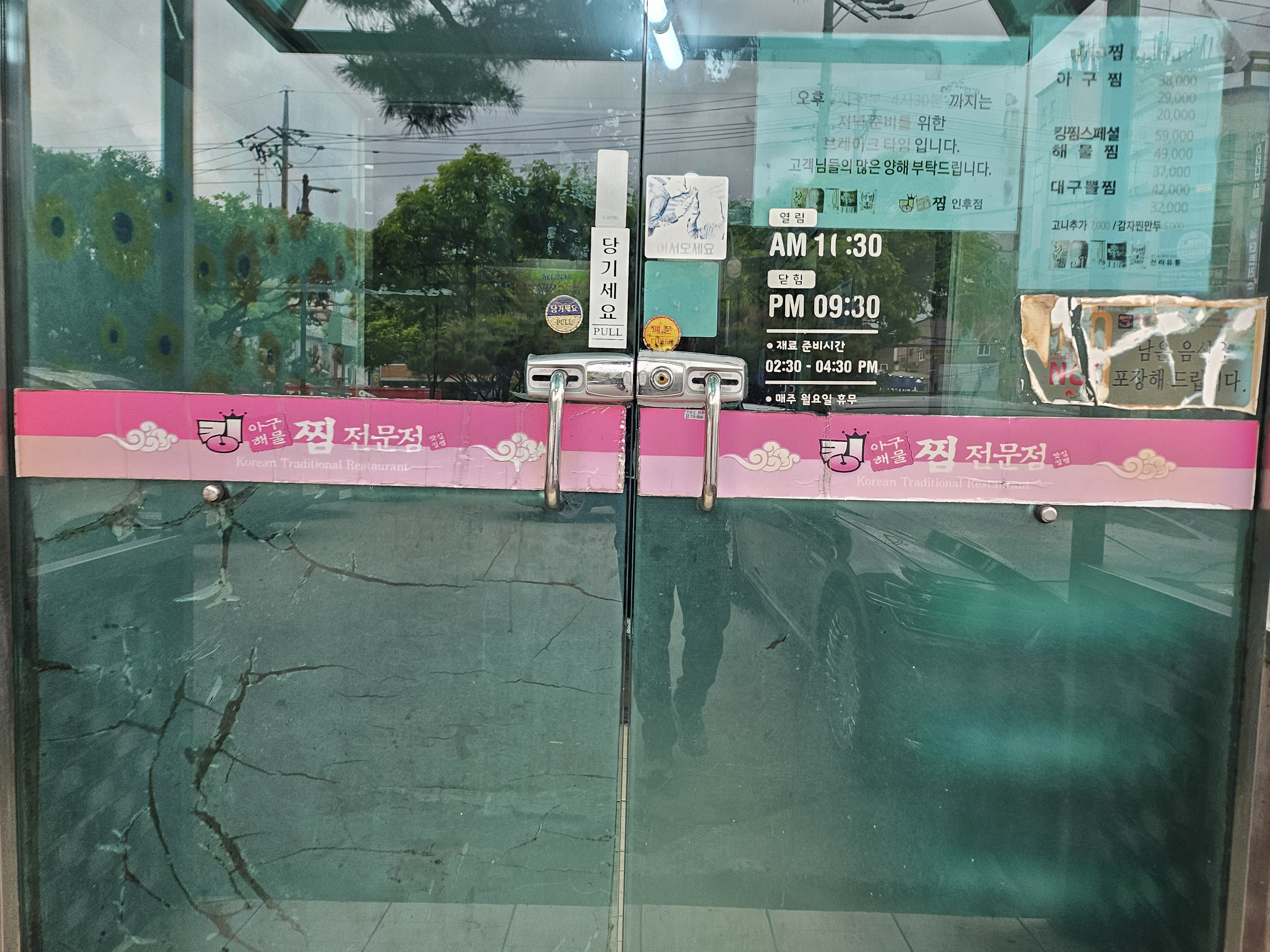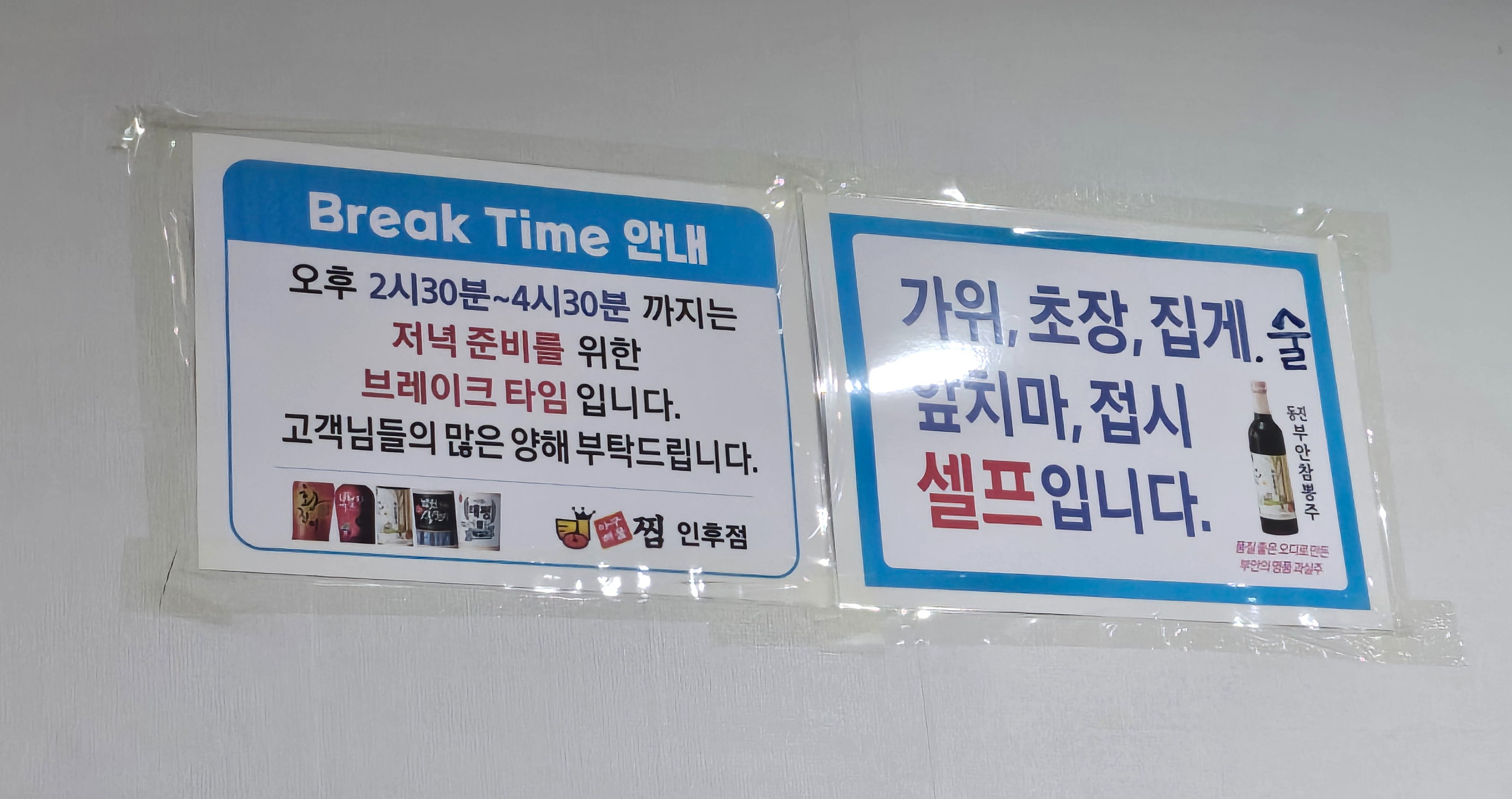 식당 앞에는 식당 운영시간과 메뉴, 그리고 가격을 붙여두어서 방문하시는 분들이 빠른 정보를 얻을 수 있도록 해두었습니다.