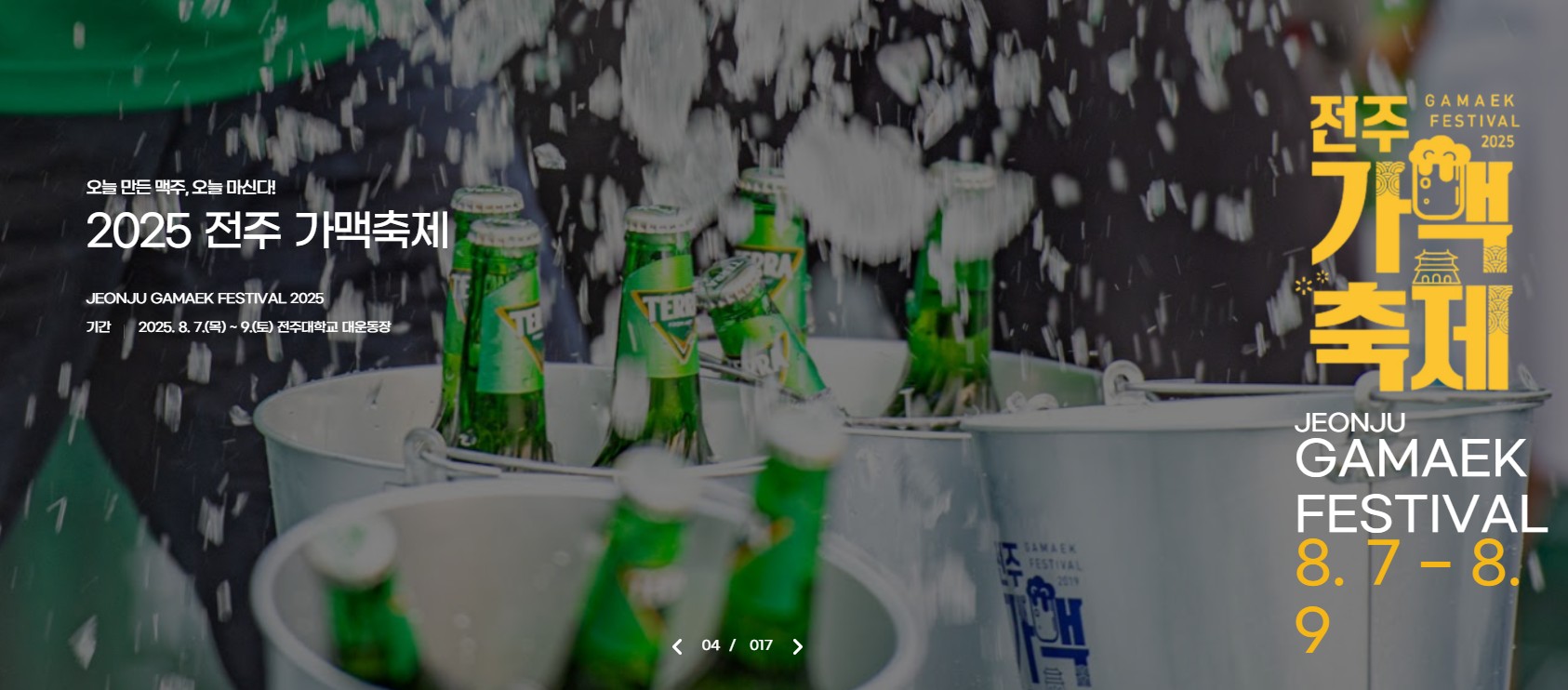 2025 전주 가맥축제는 8월 7일(목)부터 9일(토)까지 3일간 전주대학교 대운동장에서 개최됩니다. 원래 전주종합경기장에서 열렸으나, 경기장 철거로 인해 올해는 장소를 옮겨 진행된다고 해요.