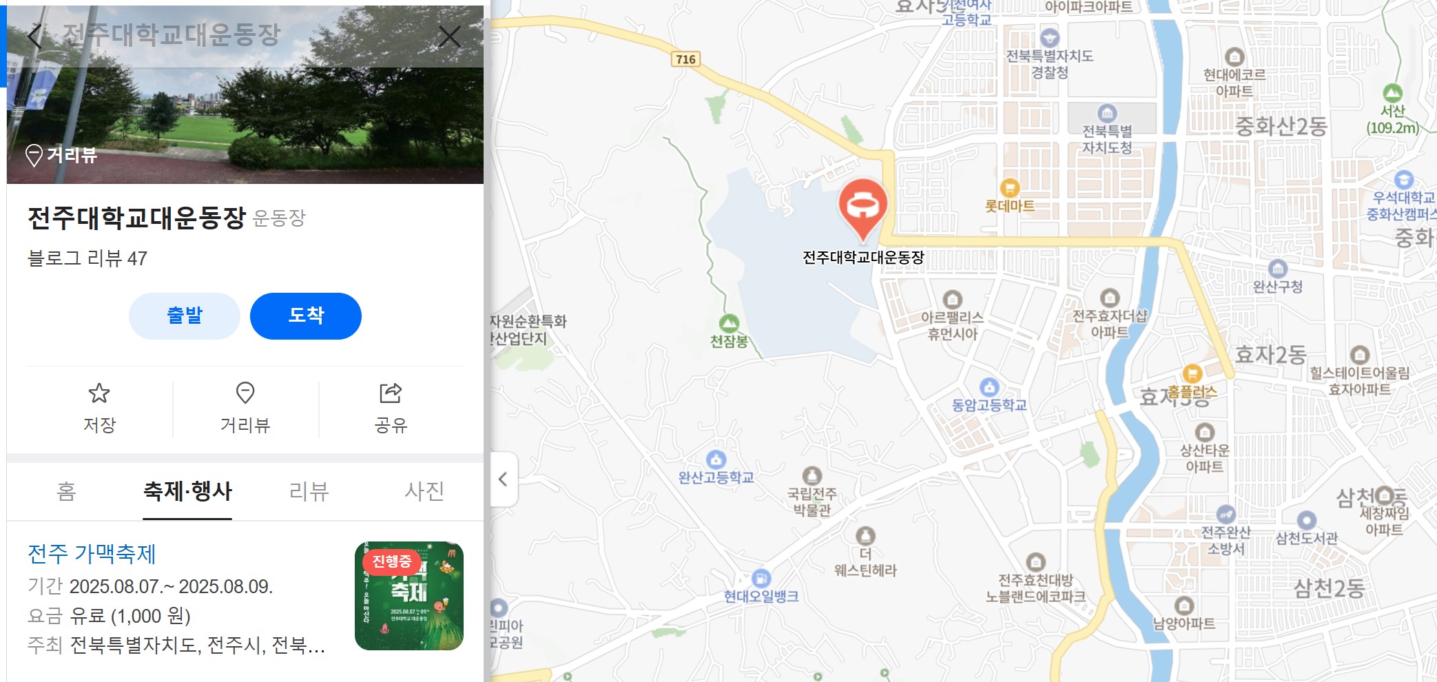 주소: 전북특별자치도 전주시 완산구 천잠로 303 전주대학교 대운동장