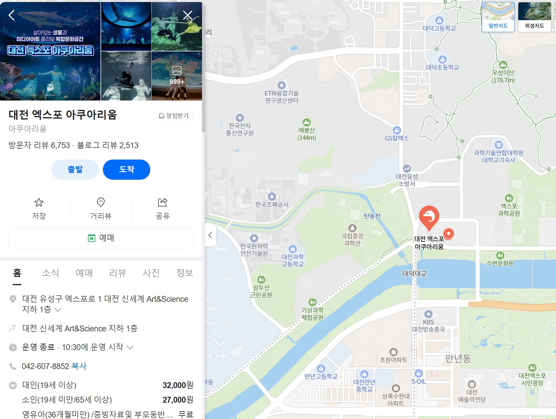 - 내비게이션에 '대전신세계 Art & Science' 또는 '대전 엑스포 아쿠아리움'을 검색하세요.