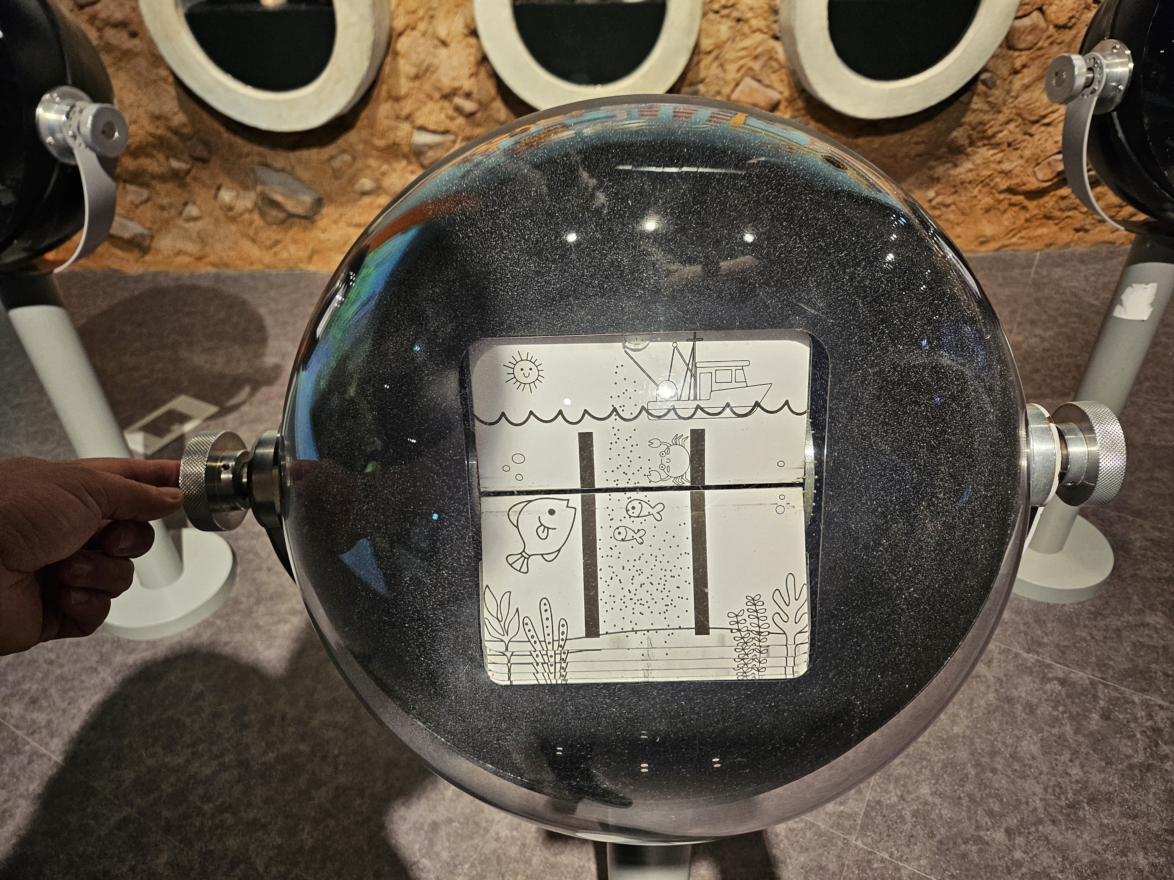 투명한 원 안에 들어 있는 애니메이션 장치는 돌림판을 돌릴수록 동물들이 인간의 개입으로 점점 고통받는 모습을 보여줍니다. 단순한 구조지만 메시지가 강력했습니다. 입을 벌린 거대한 고래 모형 안에 들어가면 영상으로 고래 뱃속에 가득한 플라스틱 쓰레기를 볼 수 있습니다. 직접 쓰레기를 정리해보는 체험까지 더해져 아이들이 플라스틱 문제를 직관적으로 느낄 수 있는 교육적 장치였습니다.