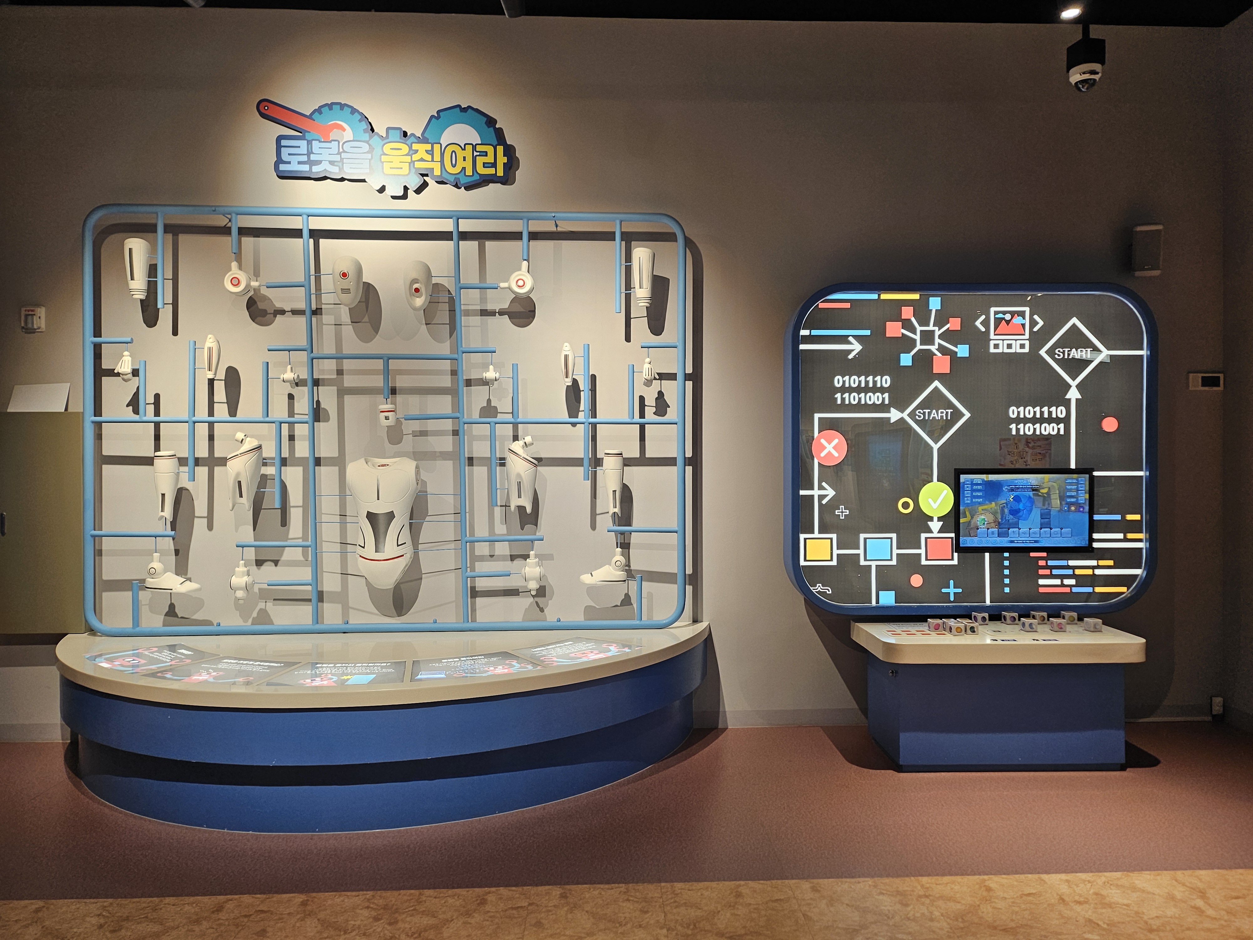 어린이과학관 2층은 로봇, 기계, 인공지능 등 미래 과학 기술을 주제로 한 체험 공간으로 어린이들이 자연스럽게 기술에 대한 흥미를 느끼고 조작해보는 경험을 할 수 있었습니다.