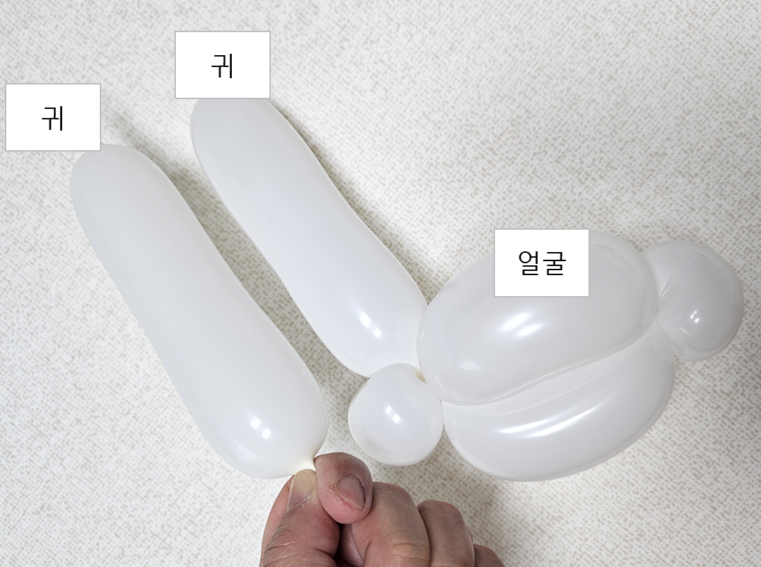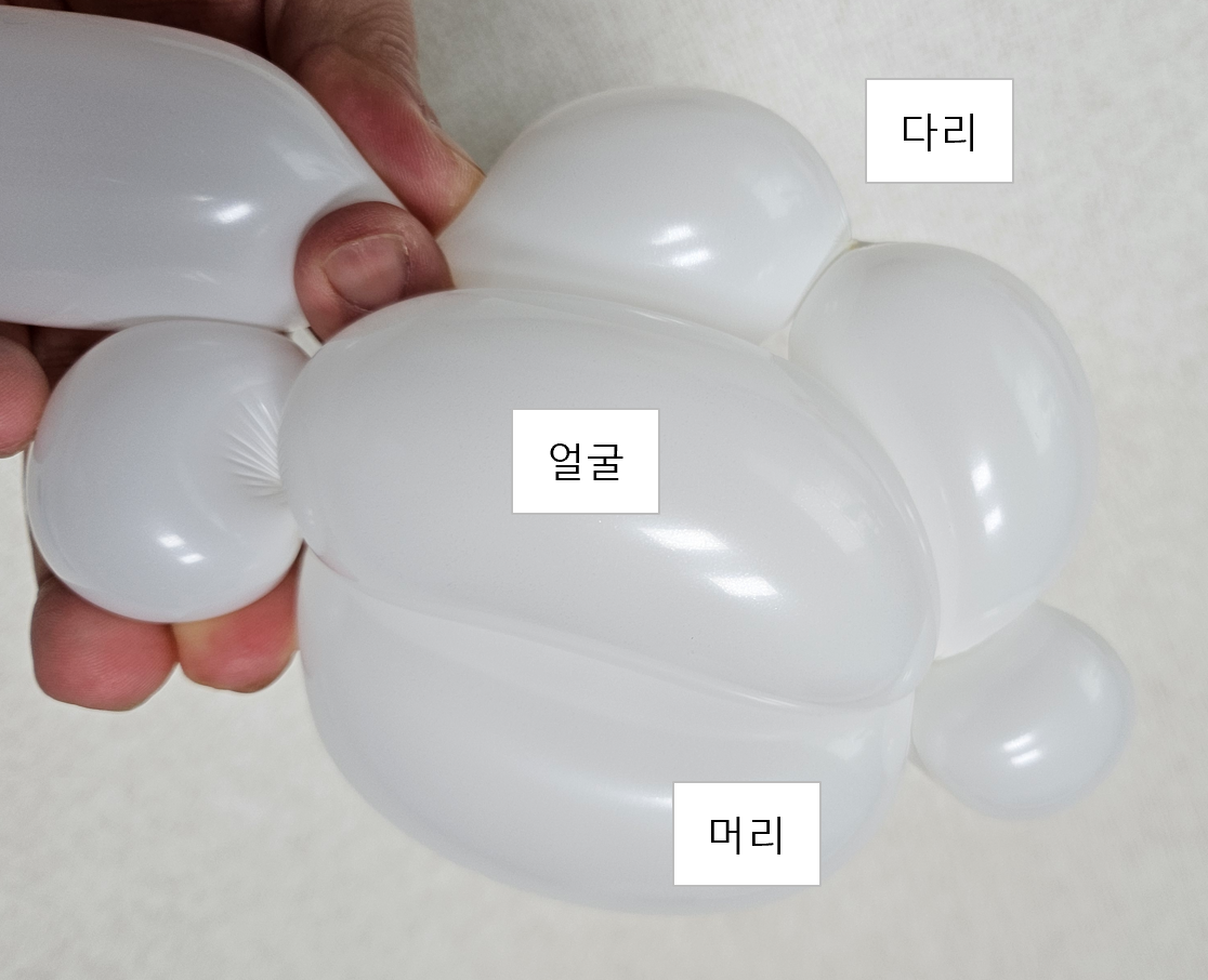 (영상에서는 2개의 막대풍선을 준비하여 몸통 부분에 1개, 귀 부분에 1개를 사용하셨습니다.)