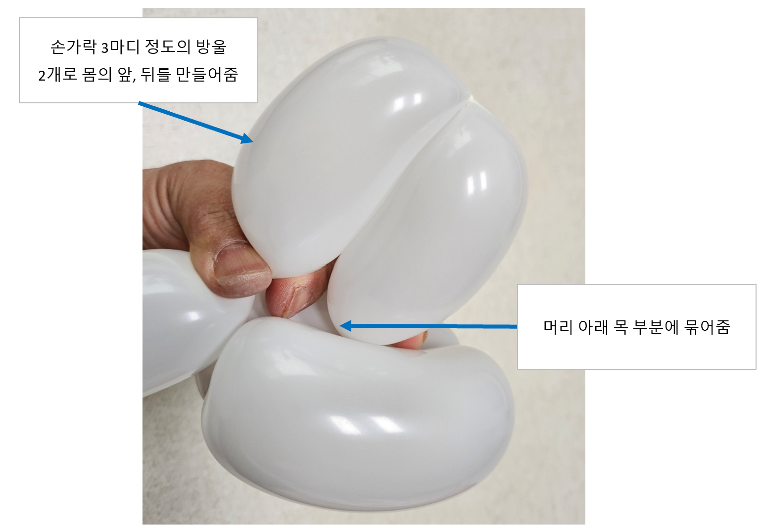 - 다른 하나는 나중에 귀를 만들어주는 부분으로 아직은 바람을 넣어두지 않습니다.