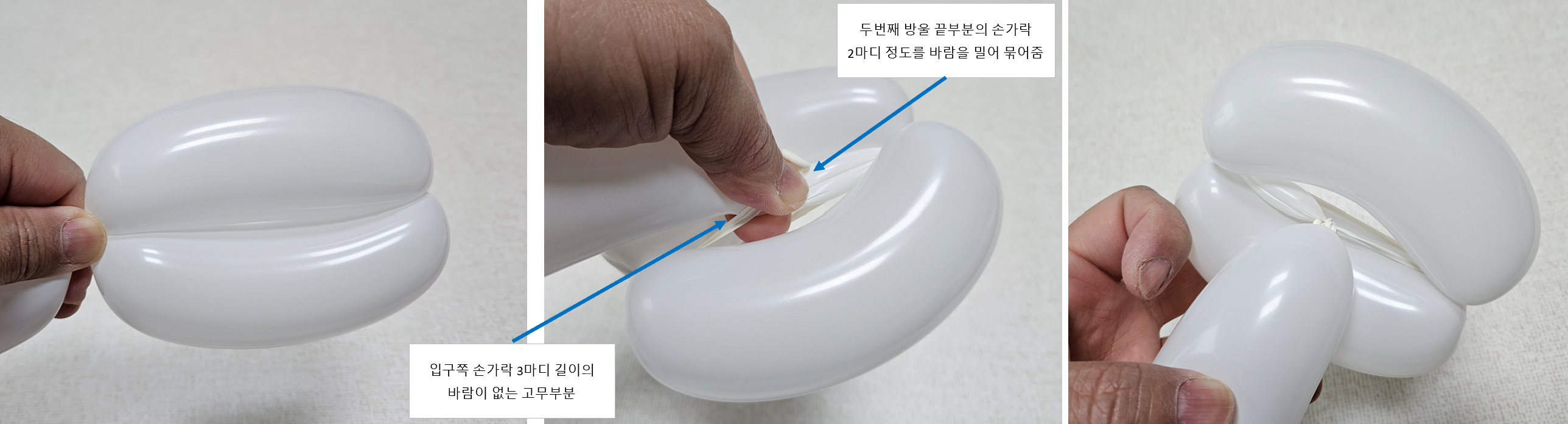 - 두 번째 방울 쪽 손가락 2마디 정도 바람을 밀어 매듭 부분과 묶어줍니다.