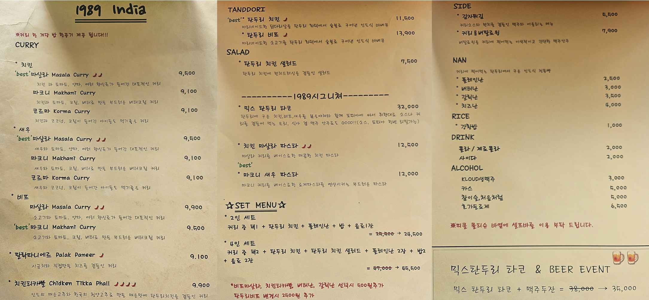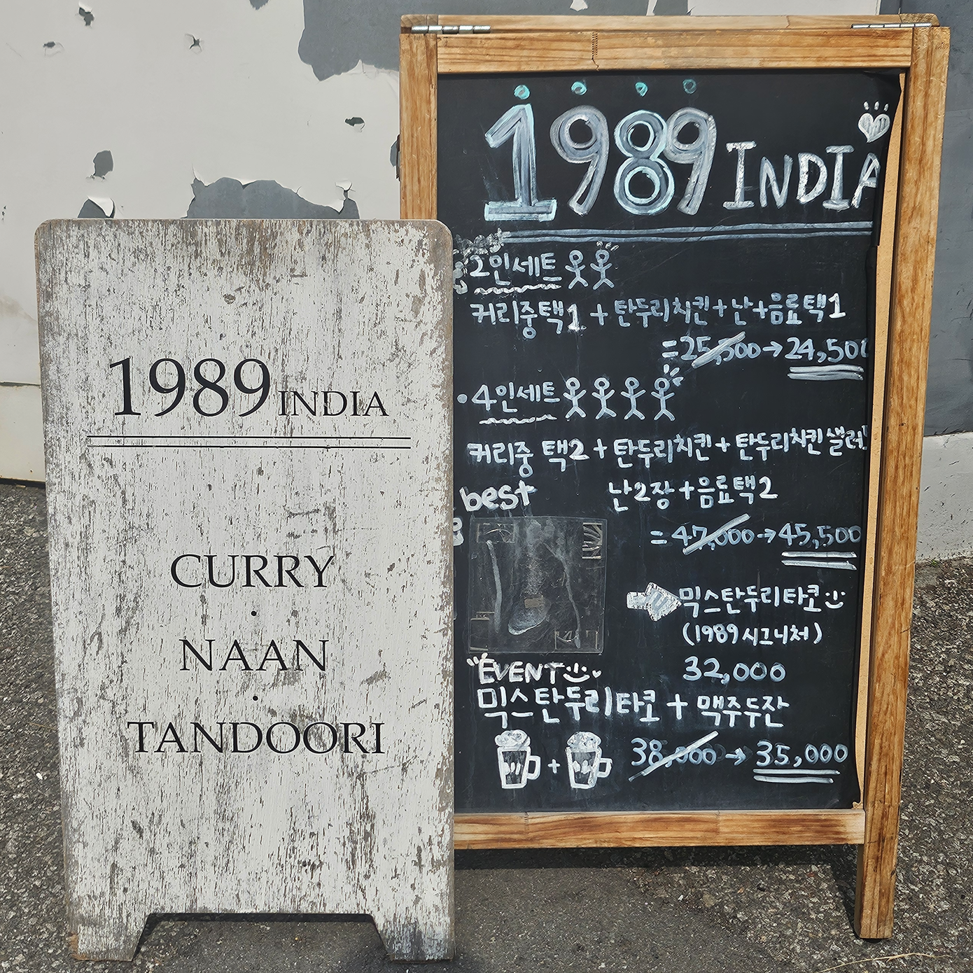 "1989인도(인디아)"는 커리, 난, 탄두리을 전문으로 하는 것으로 보였고,