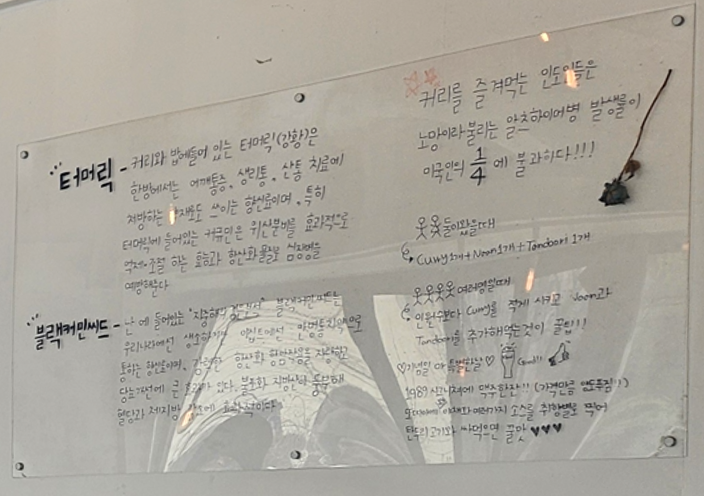요리에 사용되는 재료(터머릭/블랙커민씨드)들에 대한 안내와