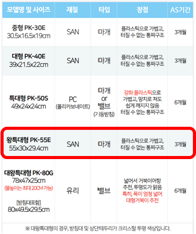 1.3 어항 선택 : 왕특대형 PK-55K (55x30x29.4cm)