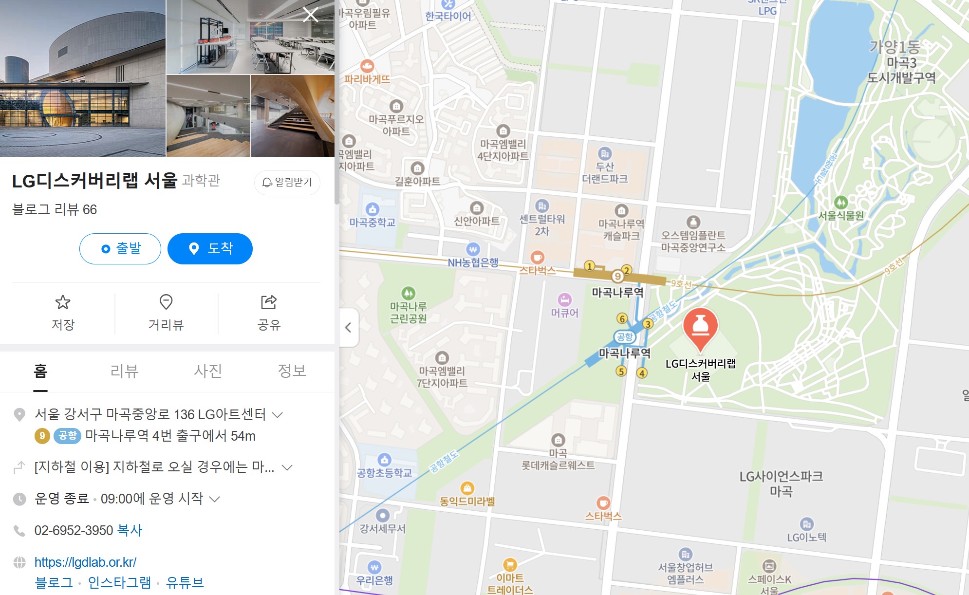- 지하철 5호선: 마곡역 3번 출구에서 도보 10분 거리입니다.