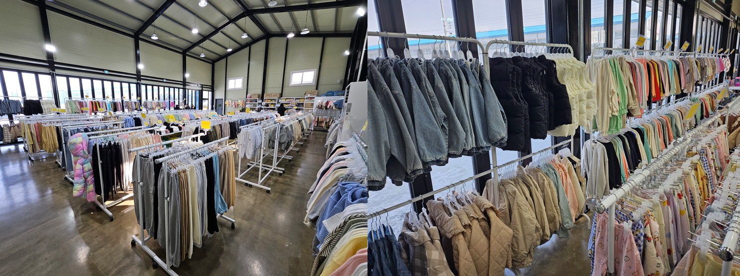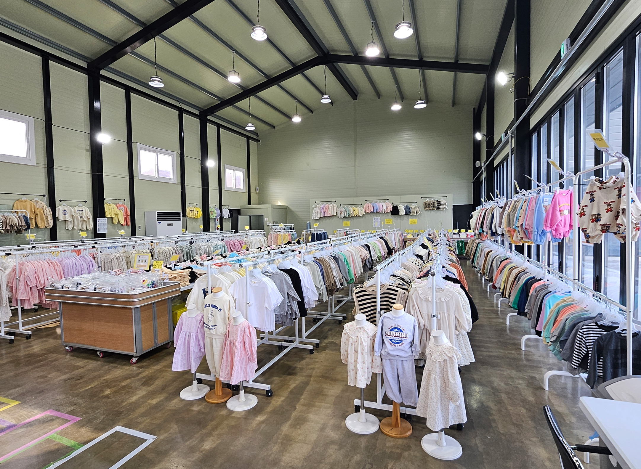전주 리틀베니는 넓고 높은 공간에 다양한 옷을 전시해 두고 있었습니다.