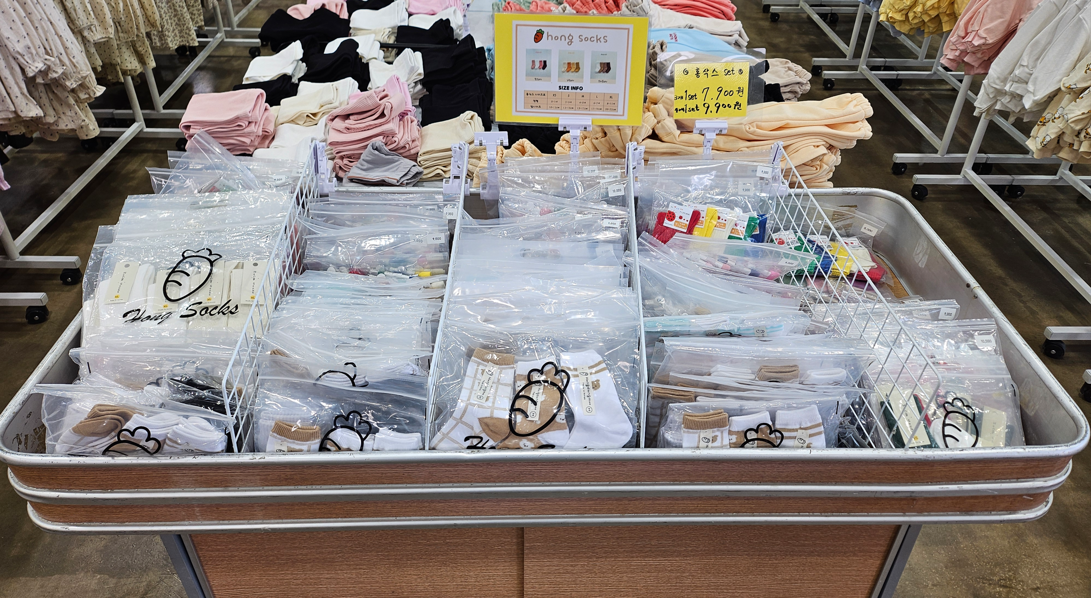 중간 부분에는 양말을 모아둔 판매대가 있어서