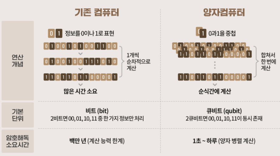 | 보안 | 현재의 암호 체계를 무력화할 수 있어, 양자 내성 암호(PQC) 개발이 필수적입니다. |