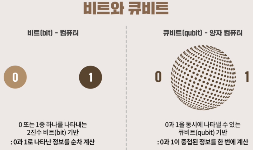 - 비트(Bit) ➡️ 큐비트(Qubit): 양자 컴퓨터는 0과 1을 동시에 가질 수 있는 큐비트를 사용합니다.