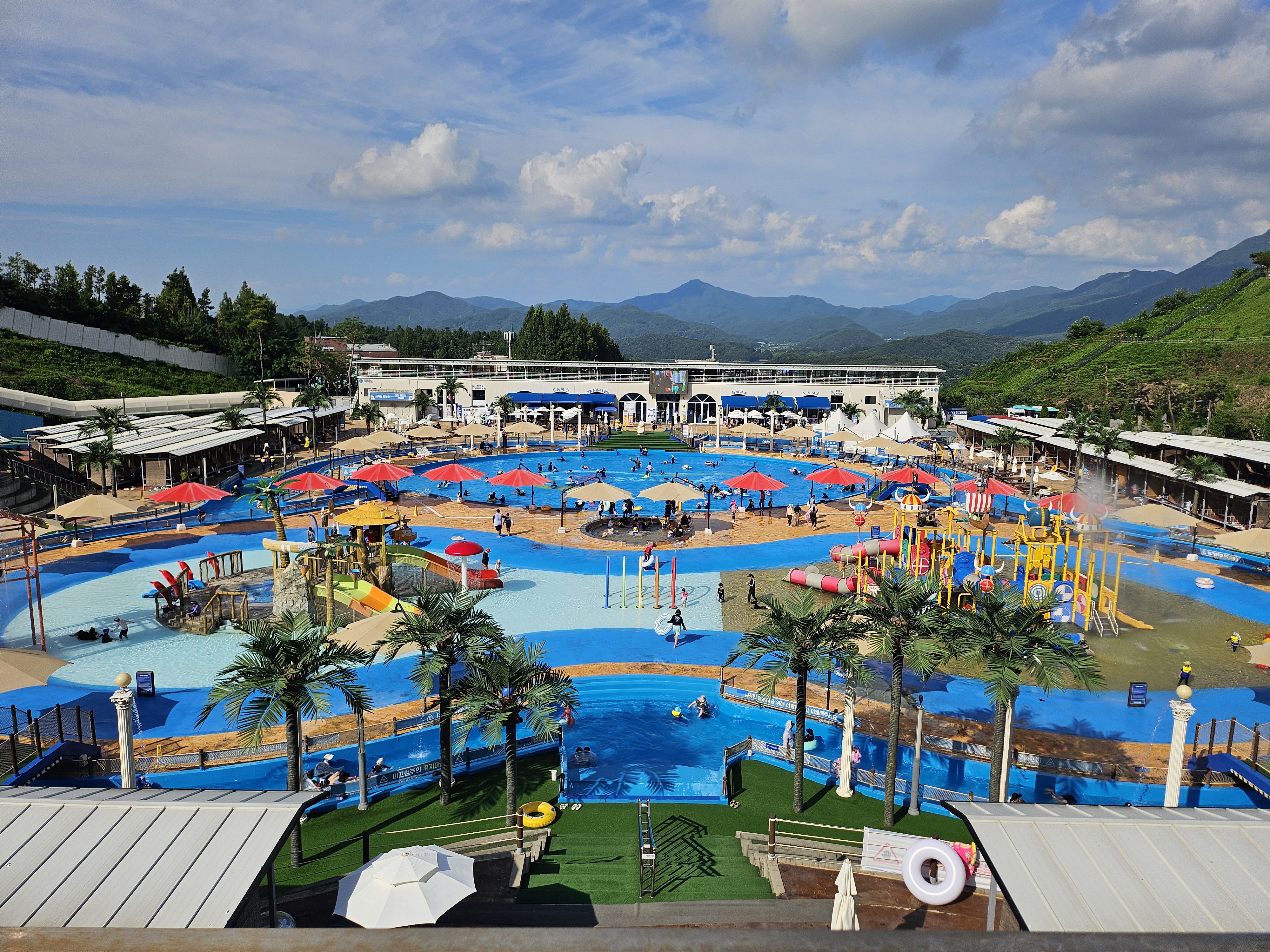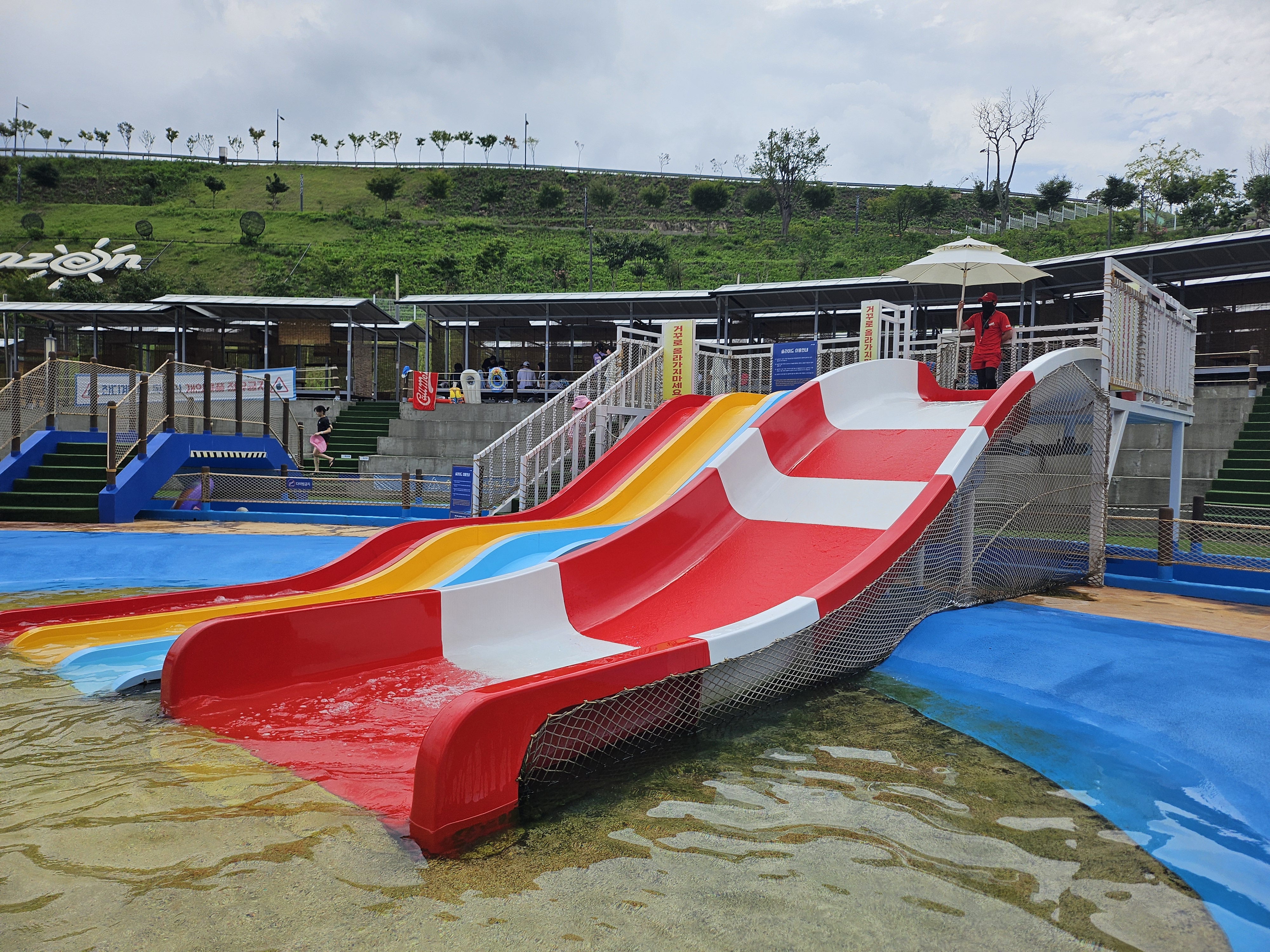 충남권에 살 때 몇몇 워터파크를 다녀왔지만 두 딸아이는 엄지 척! 하며 최고라고 표현을 해주었습니다. 특히 유수풀의 유속이 제법 빠르게 느껴져서 지루할 틈이 없었고, 다양한 풀장이 있어서 아이들이 연신 신나게 뛰어놀 수 있었습니다. 또한 DJ 공연 등이 잘 준비가 되어 있고, 끼니와 간식을 해결할 수 있는 공간들이 잘 준비가 되어있었습니다. 카바나의 공간도 좁은 것 같지 않았고 햇볕이 강하지 않은 날에는 테이블을 빌려 짐을 두고 간단한 식사를 할 수 있어 보였습니다. 전반적으로 만족감이 큰 워터파크라고 생각이 되었습니다. 하지만 한 가지 샤워시설이 좀 더 넓고 쾌적했다면... 어땟을까?라는 아쉬움이 남는 대목이었습니다.