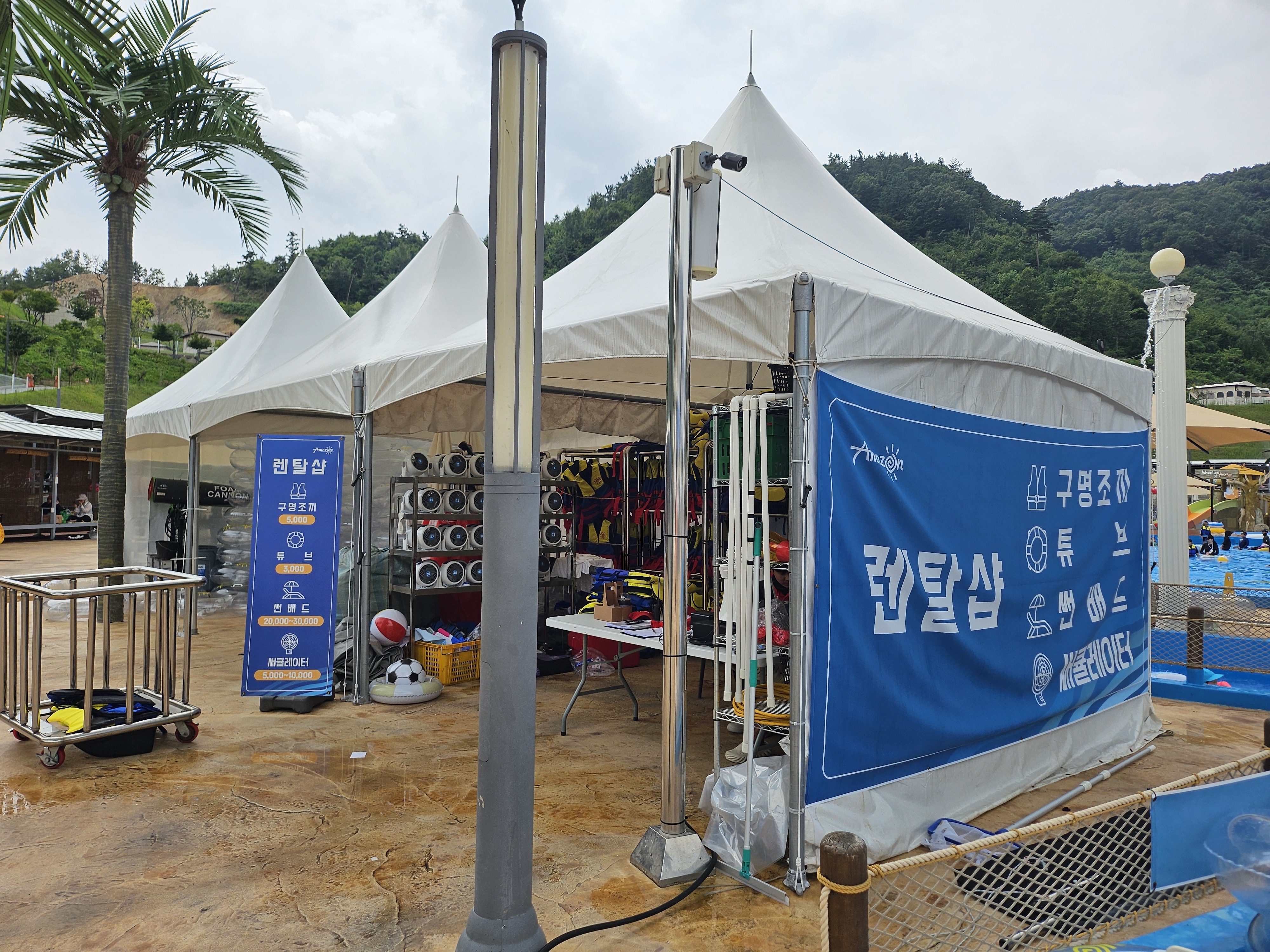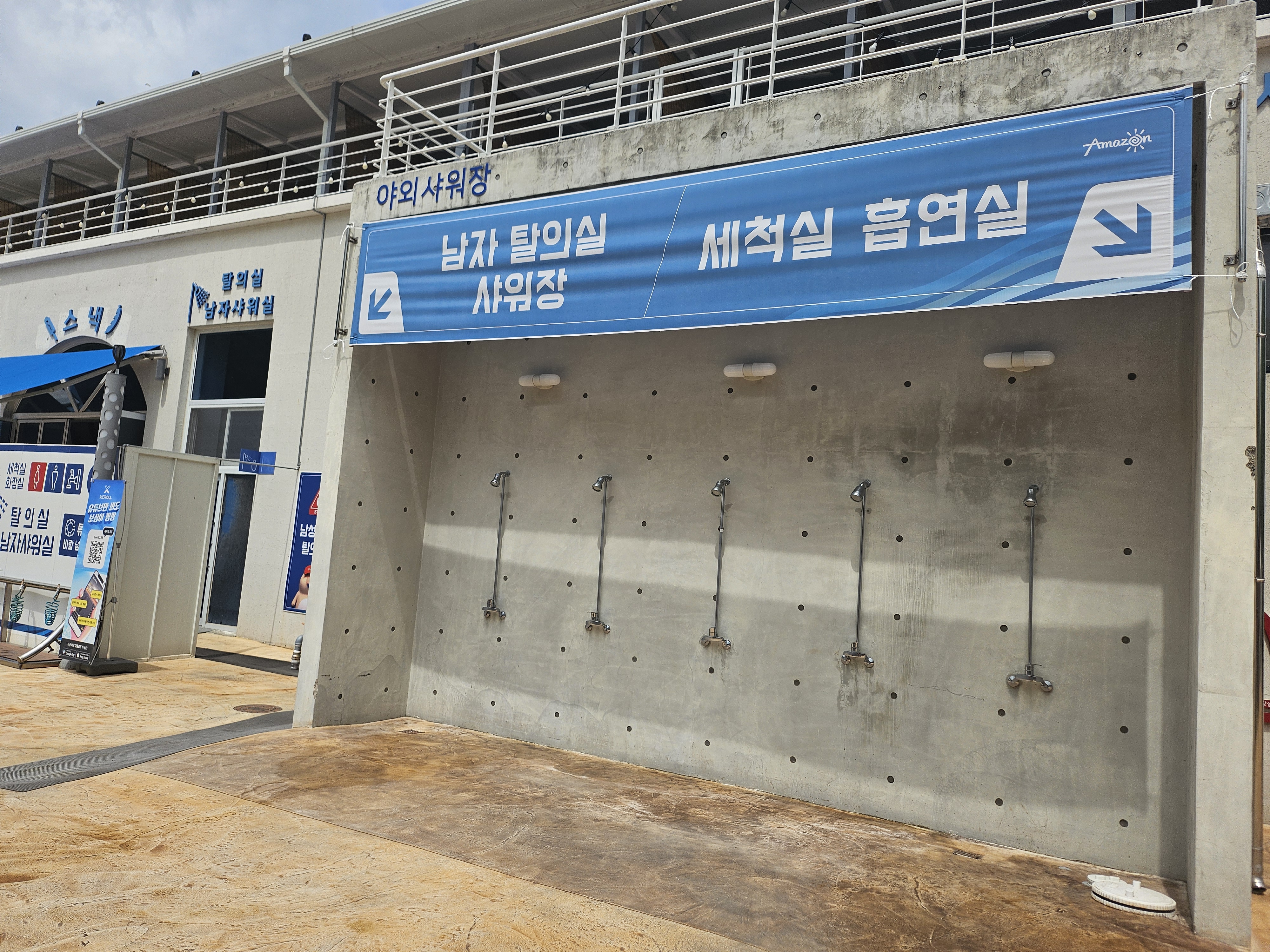 가족풀 옆으로 렌탈샵이 있었고, 카바나에 전기시설이 들어와 있어서 서큘레이터 등을 돈을 주고 대여해서 사용할 수 있도록 배려해 두었습니다. 탈의실/샤워장이 있기는 하지만 밖에서 간단하게 씻을 수 있는 야외 샤워시설도 있었습니다. 참고로 퇴장 시간이 다가오니 다소 좁은 공간에서 많은 사람들이 옷을 벗고, 샤워를 하기에는 충분하다는 생각이 들지 않았습니다.