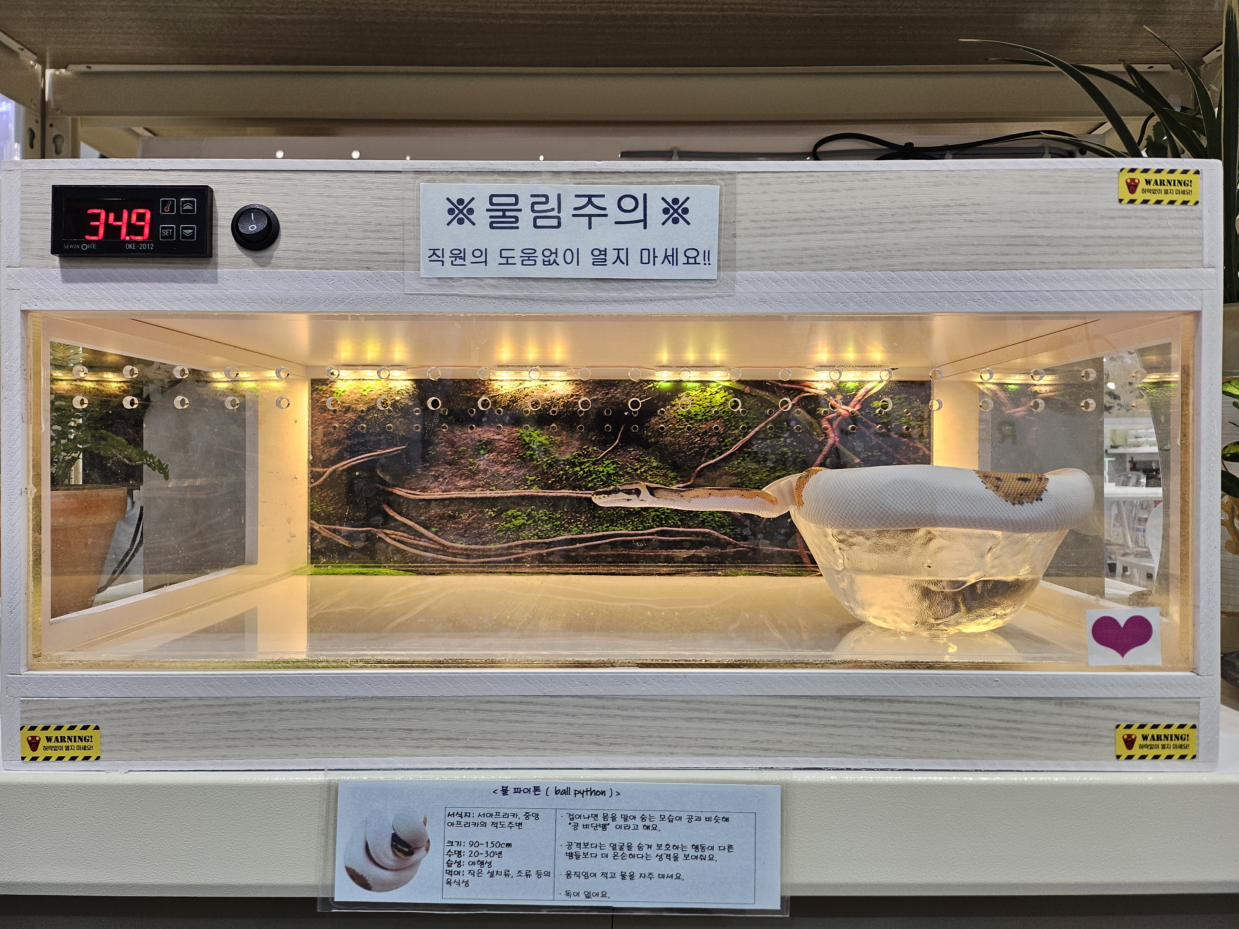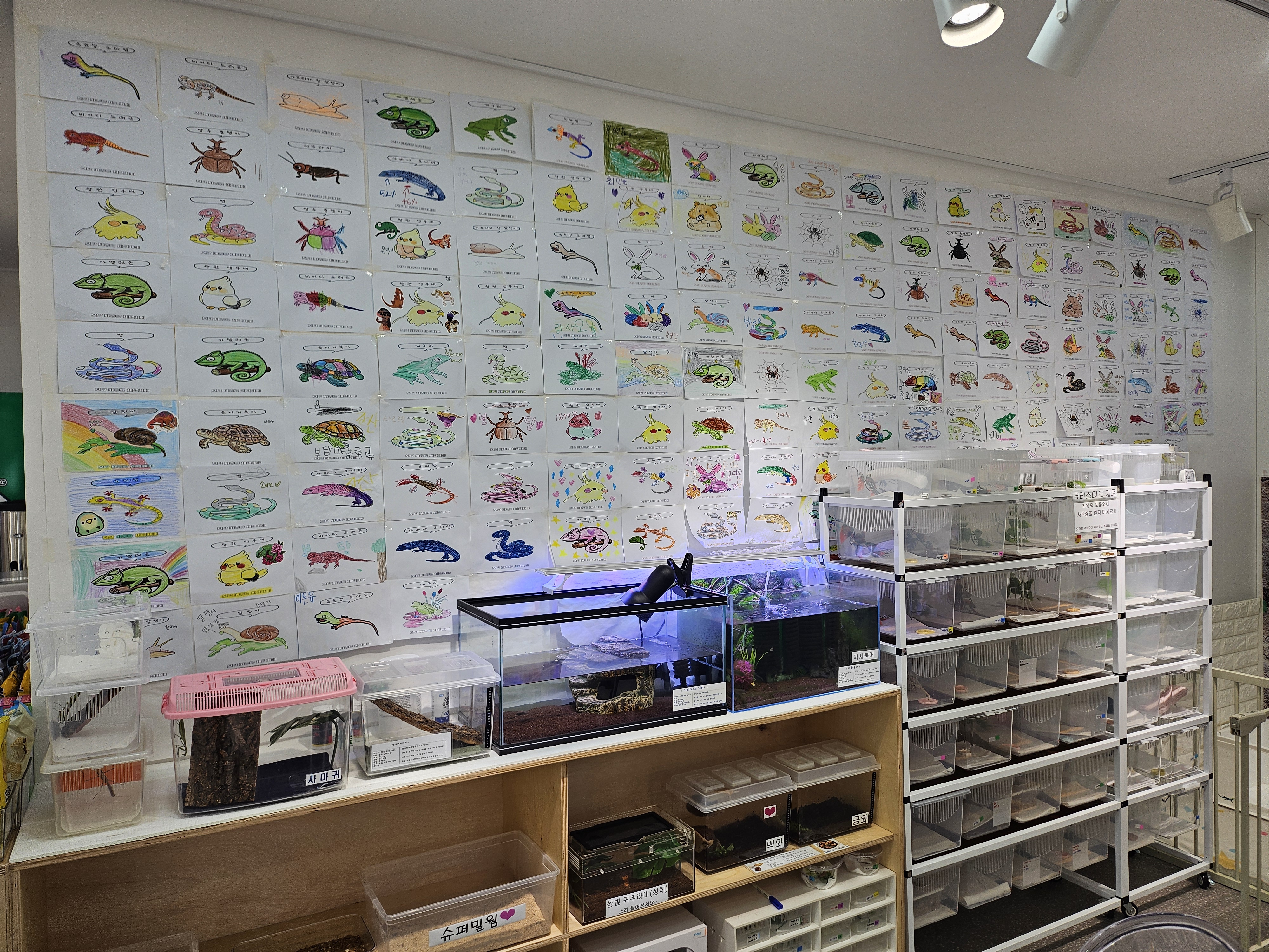 파충류와 같은 생명체가 있다 보니 냄새나 관리가 어려울 것으로 생각되었는데 매장 안에서는 이상한 냄새도 바닥에 먼지도 없이 아주 깔끔하게 관리되고 있음을 느낄 수 있었습니다. 사장님들도 아이들의 요청 사항에 적극적으로 들어주시고 옆에 서서 설명도 자세히 해주어 아이들의 집중력을 높여주었습니다.