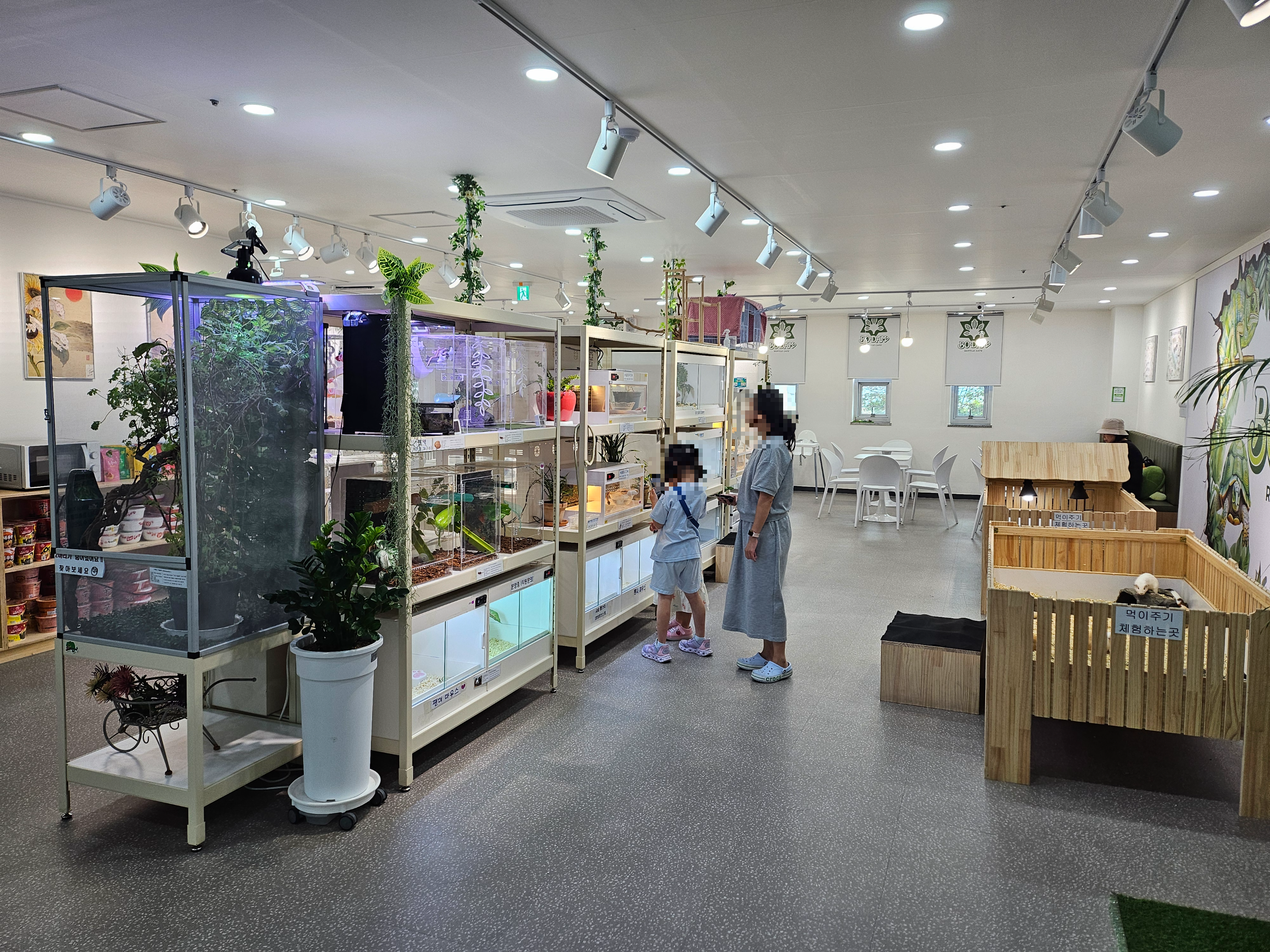 카페 오픈 시간에 맞춰서 두 번째 입장 가족이 되었습니다. 잠에서 깨어나 아침을 먹고 왕성한 기운들을 가지고 움직이는 파충류와 동물이 이니스 가족을 맞이해 주었습니다. 이른 입장이어서 그런지 한산함을 느끼며 매장 내부 곳곳을 구경할 수 있었습니다. (하지만.. 12시부터는 입장하는 사람들이 많이졌.... 네요)