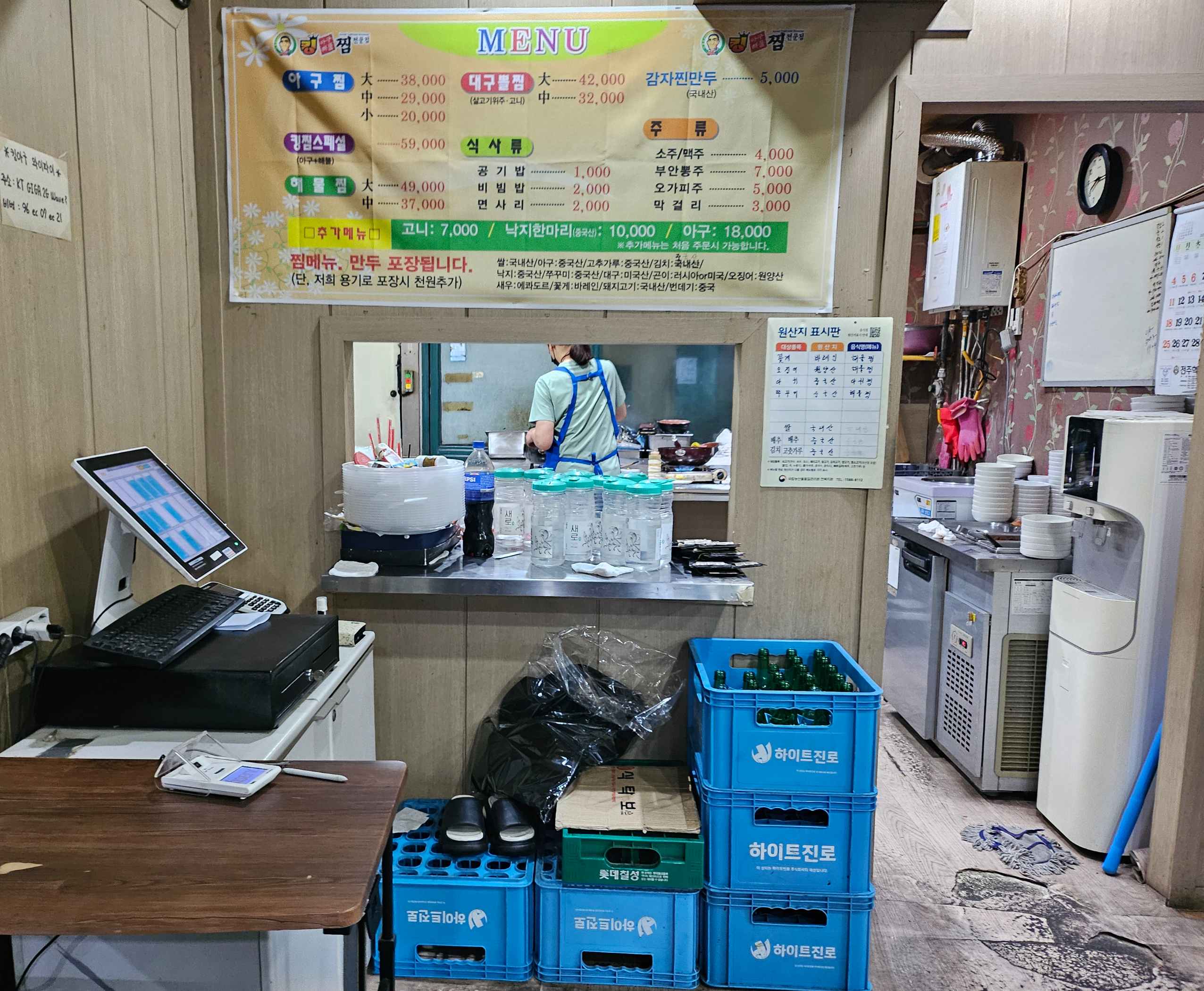 어머니와 더불어 아시는 분 한 분을 더해 총 3인이 식사를 하러 왔습니다. 메뉴판을 보니 아귀찜/해물찜/대구뽈찜 등 어머니 세대가 좋아할 음식들을 주 메뉴로 하는 것을 알수 있었습니다. 3명이 먹을 것을 고려하여 아구찜 대를 1개 주문을 하였습니다.