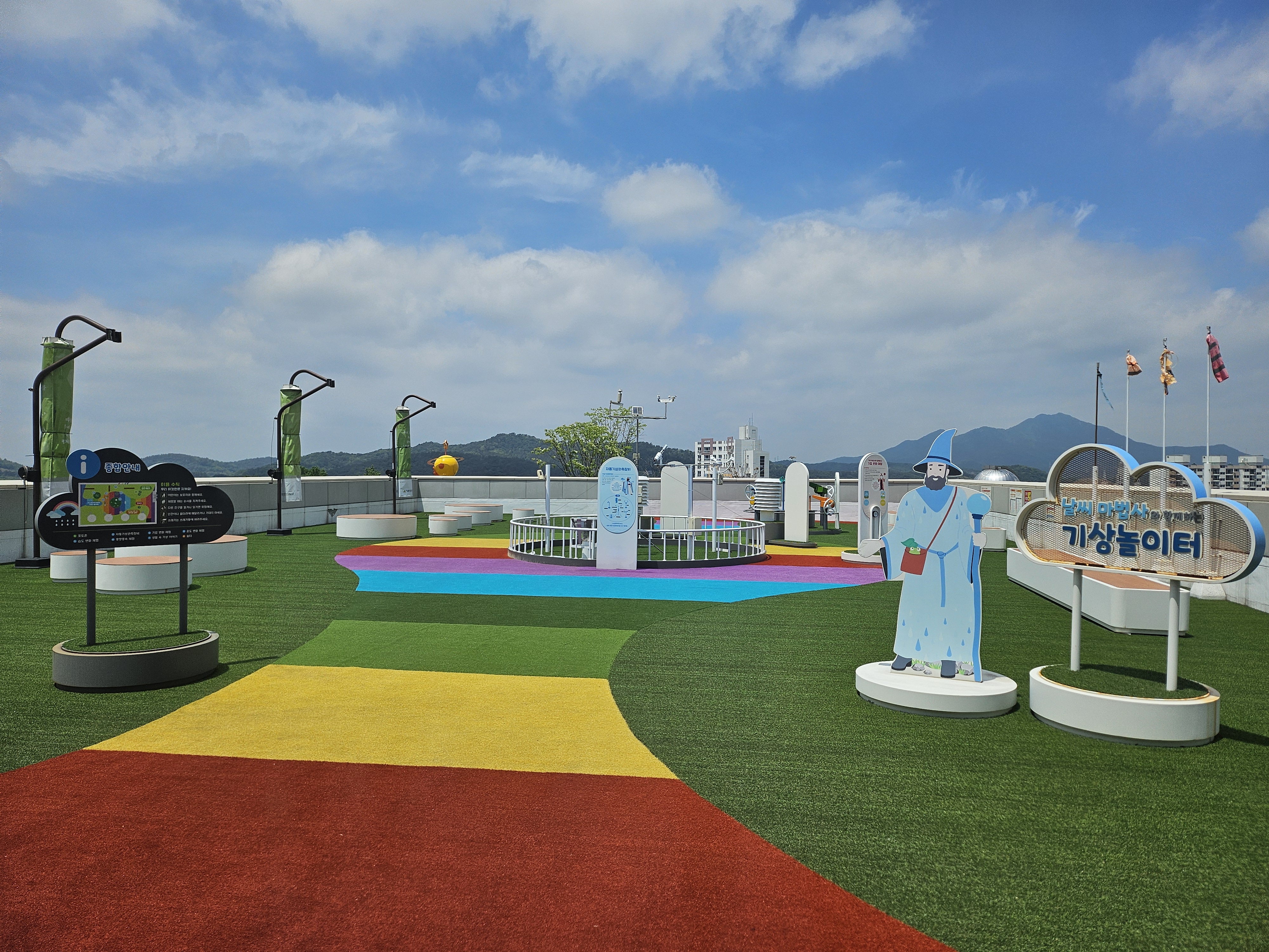 기상관측 기구, 조상들의 기상 도구, 기상관 캐릭터 동산 등이 설치되어 있었습니다.