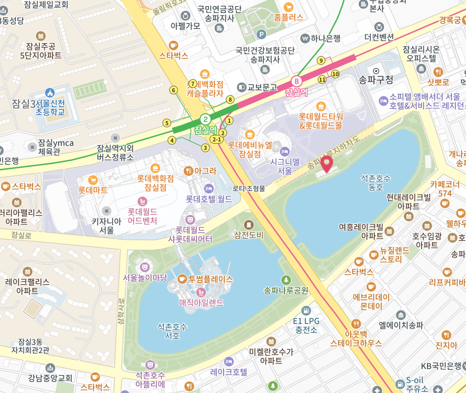 ▷ 2호선 잠실역 2번 출구 → 도보 5분