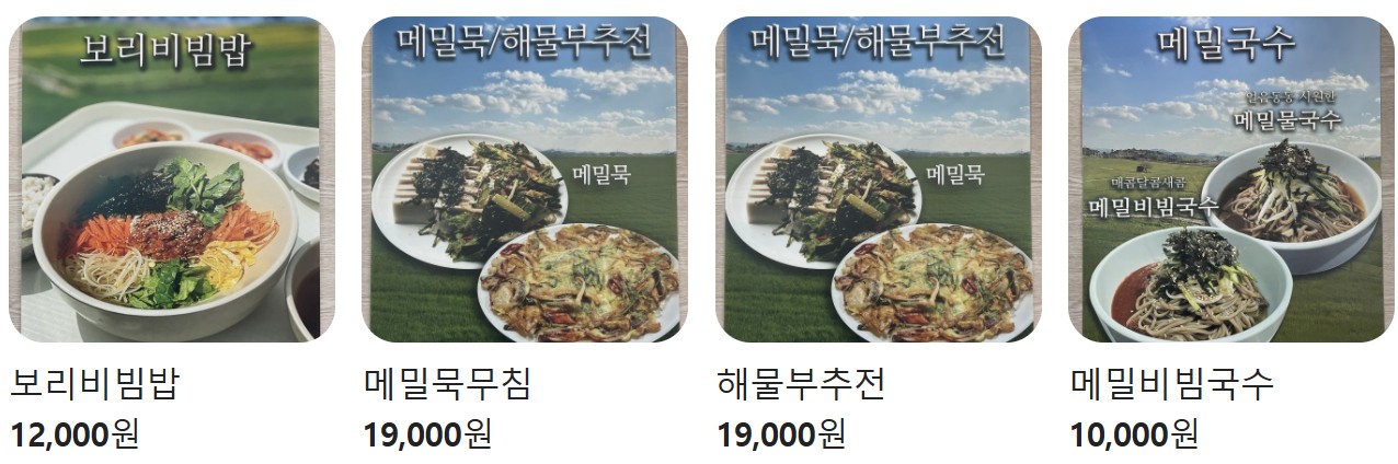 ▷ 메뉴 : 보리와 메밀을 주 원료로 한 맛있고 다양한 음식을 제공합니다.
