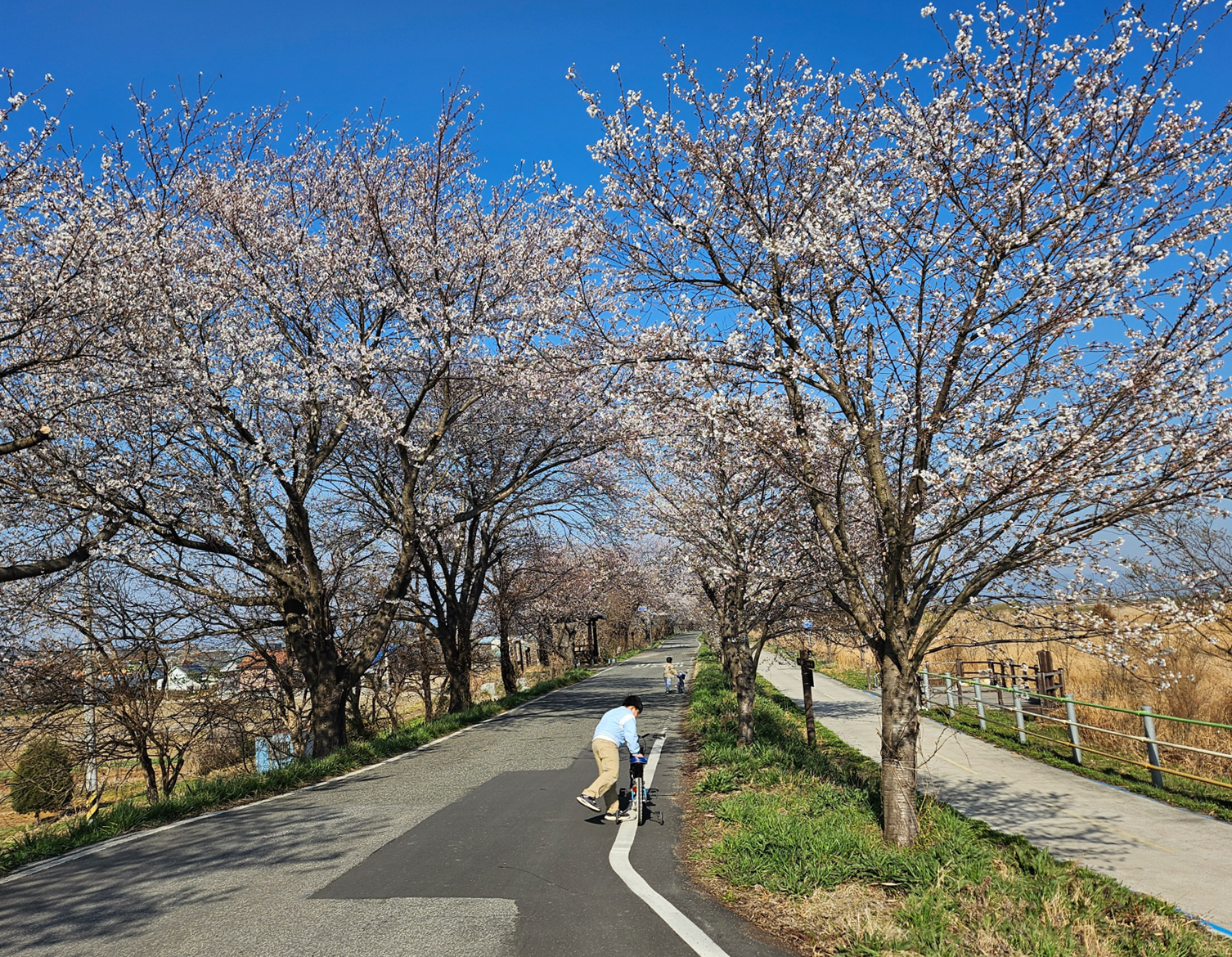 - 만경강길 자전거 타기를 시작하면서 벚꽃이 피는 시기에 꽃구경을 하면서 자전거를 타보고 싶다고 생각을 했는데 막간의 시간을 이용해 자전거를 타며 건강도 챙기고, 봄이 오고 있음을 더 확실하게 느낄 수 있어서 좋은 시간이 되었습니다.