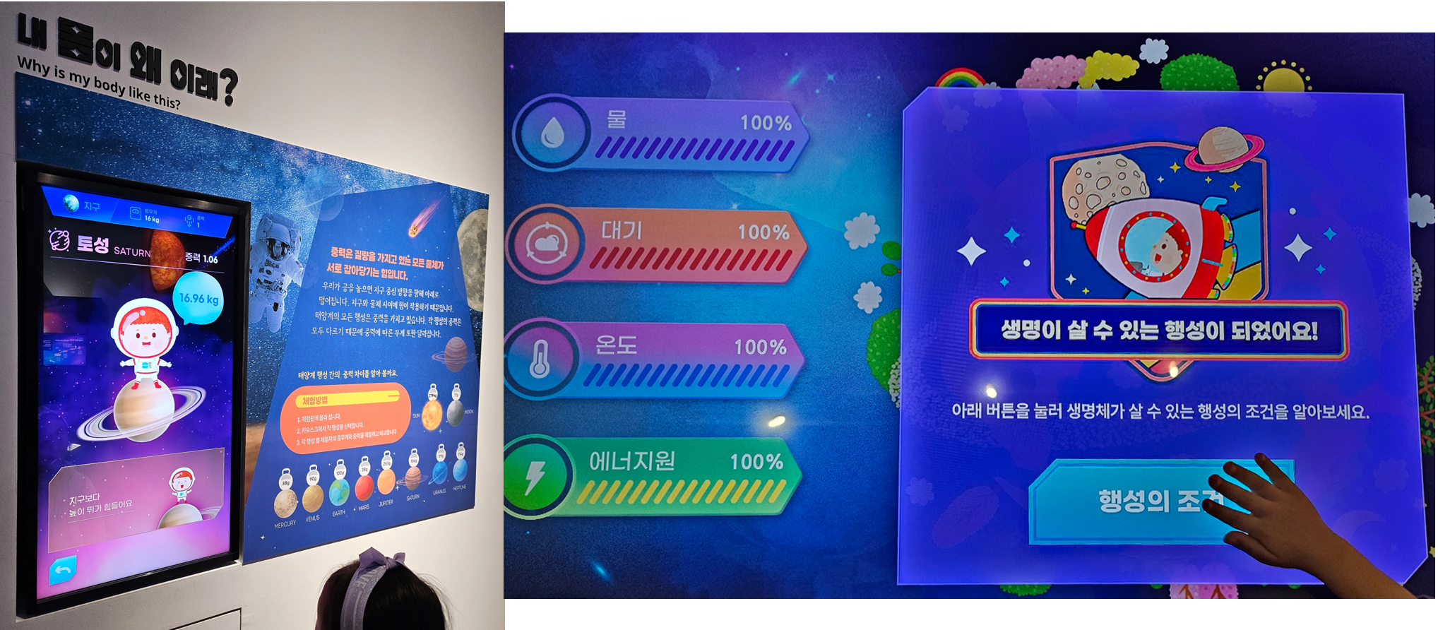 터치스크린을 눌러가며 행성별 나의 몸무게도 확인해 보고,