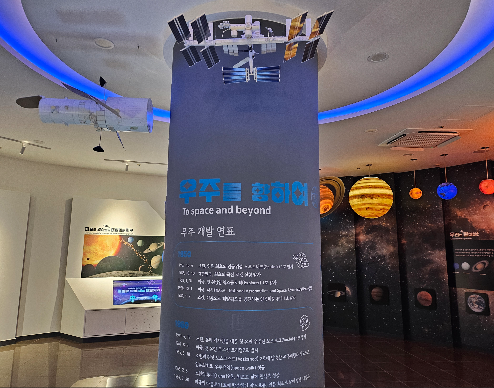 우리나라의 우주 개발 역사를 알 수 있는 전시물이 있었습니다.