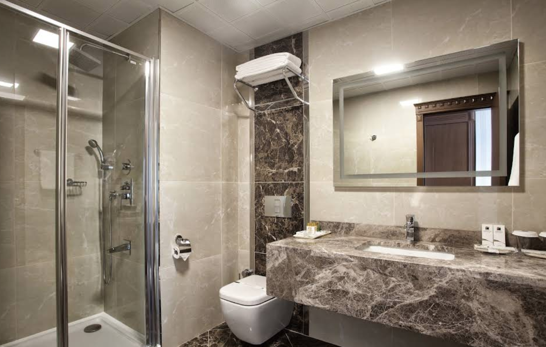 침실 공간에는 카펫이 깔려있었고, 화장실에는 대리석으로 깔려있어서 더욱 멋들어진 모습을 보여주었습니다.