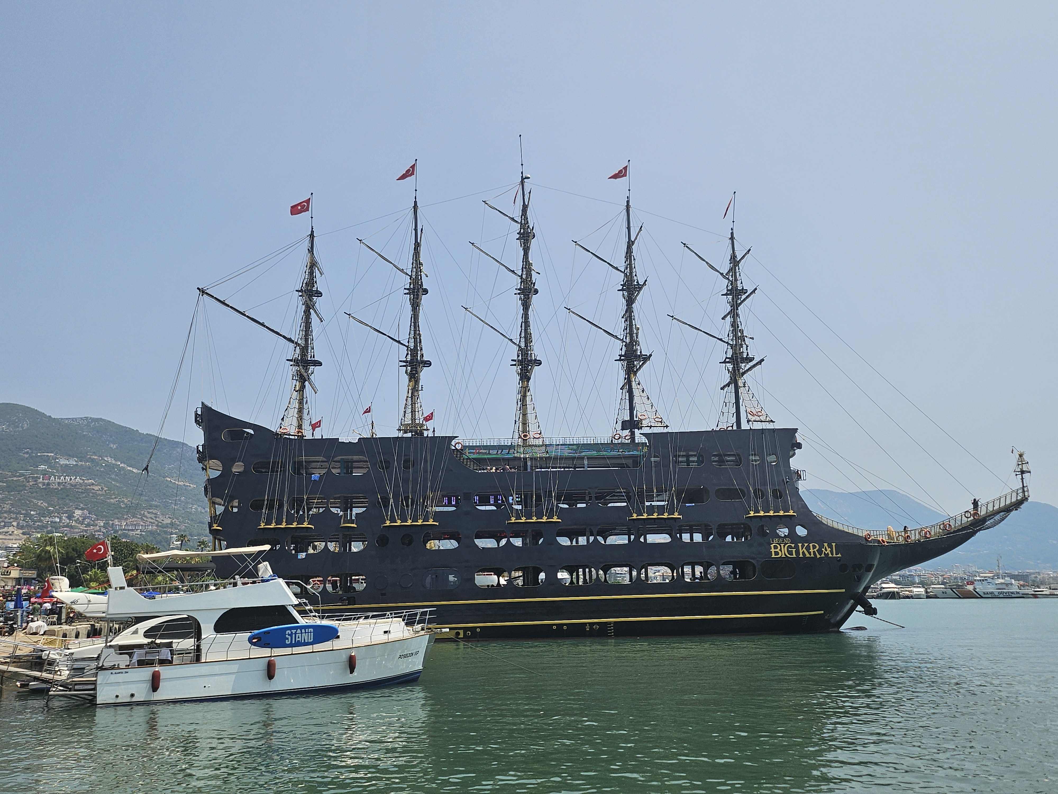 이 배는 'Big Kral Pirate Boat Tour'로 다양한 SNS를 통해 인원을 모집하여 Turkler에서 오전에 출항하여 알라니아 항구에 정박하여 주변관광을 하고 오후에 다시 Turkler로 회항하는 항로를 갖는 유람선 투어였습니다.