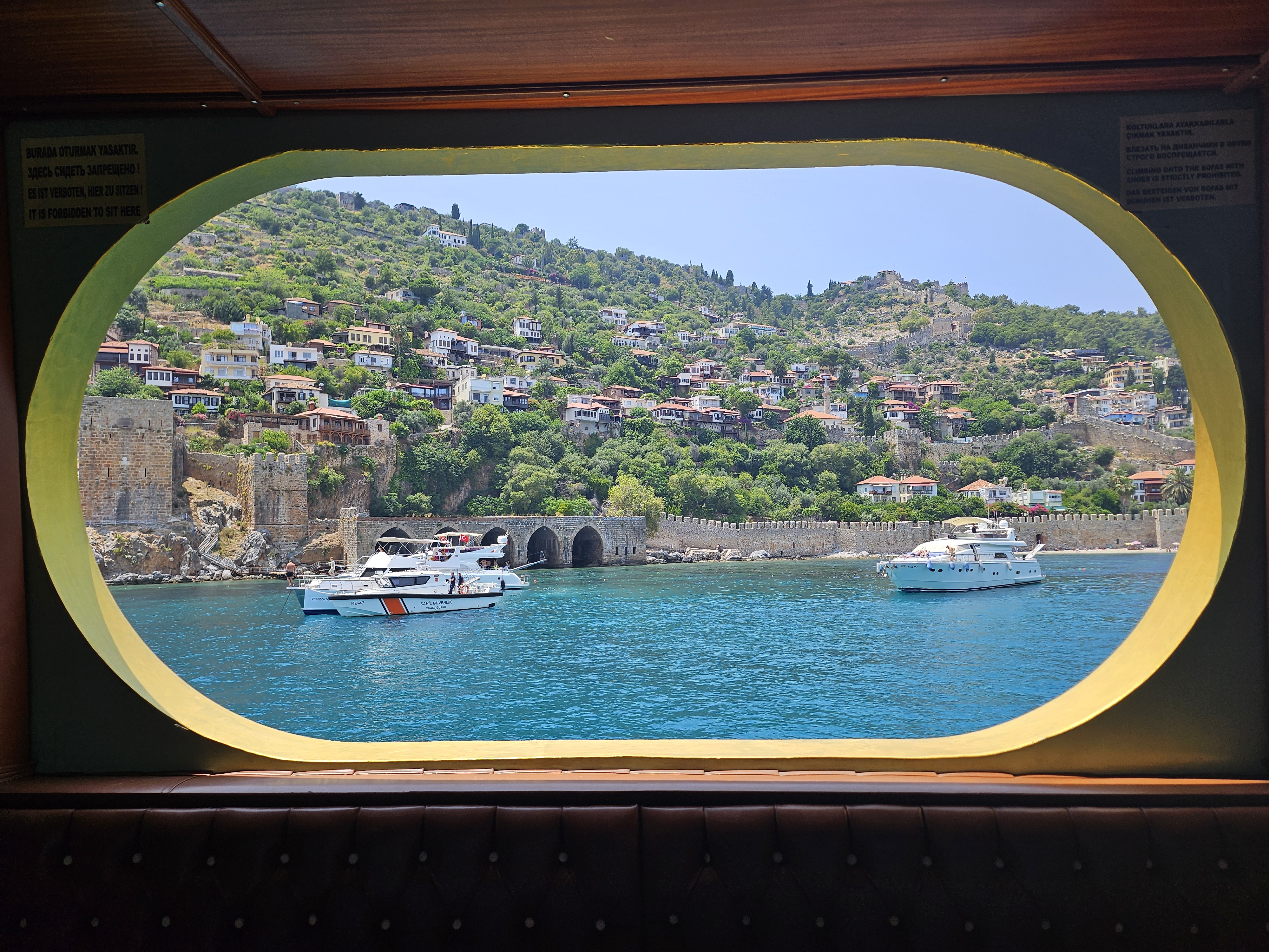 출항을 하고서 창밖으로 보이는 알라니아 성과 성벽을 더 자세히 볼 수 있었고, 바다에서 바라보는 셀주크 조선소도 만나볼 수 있었습니다.