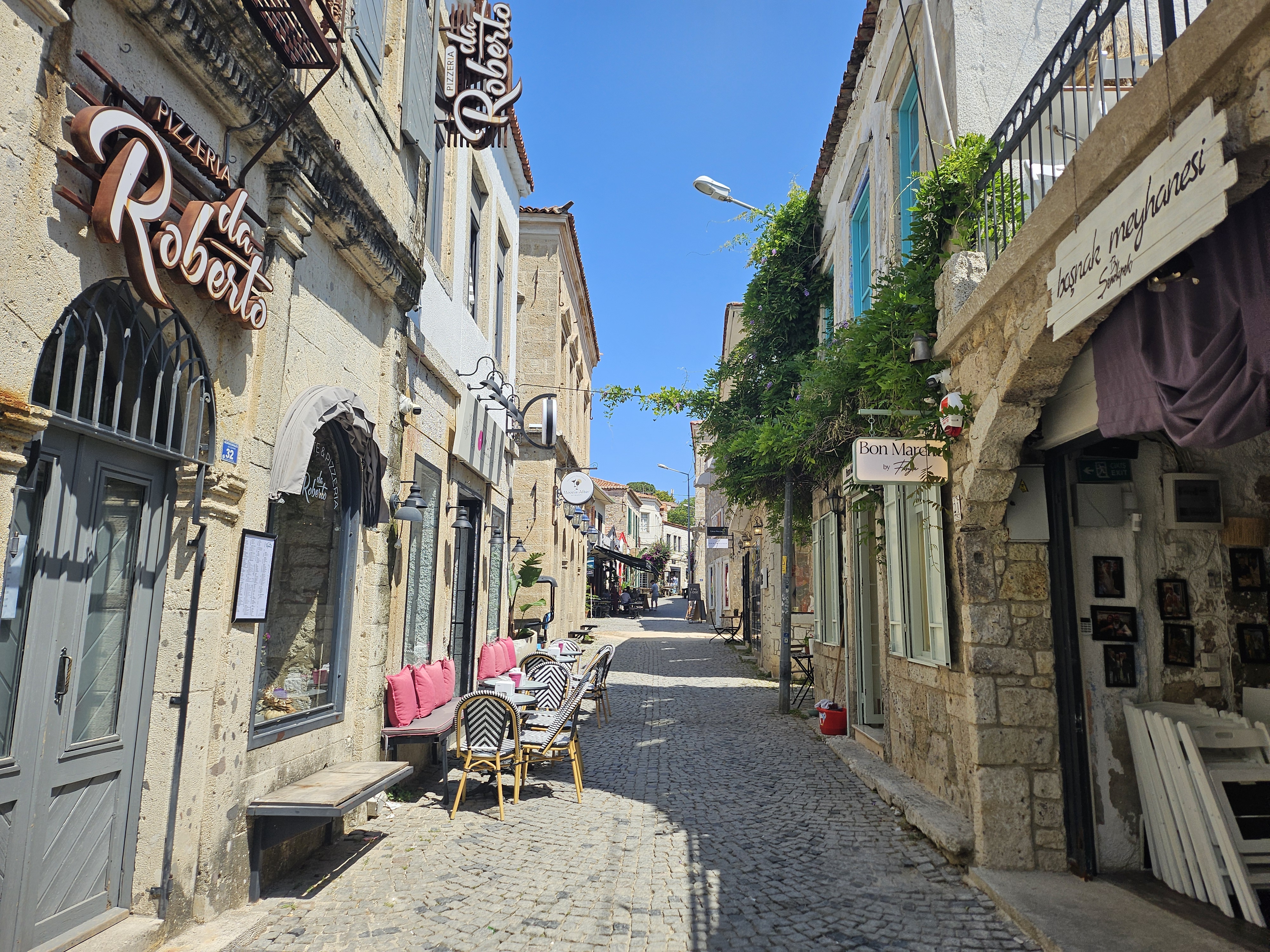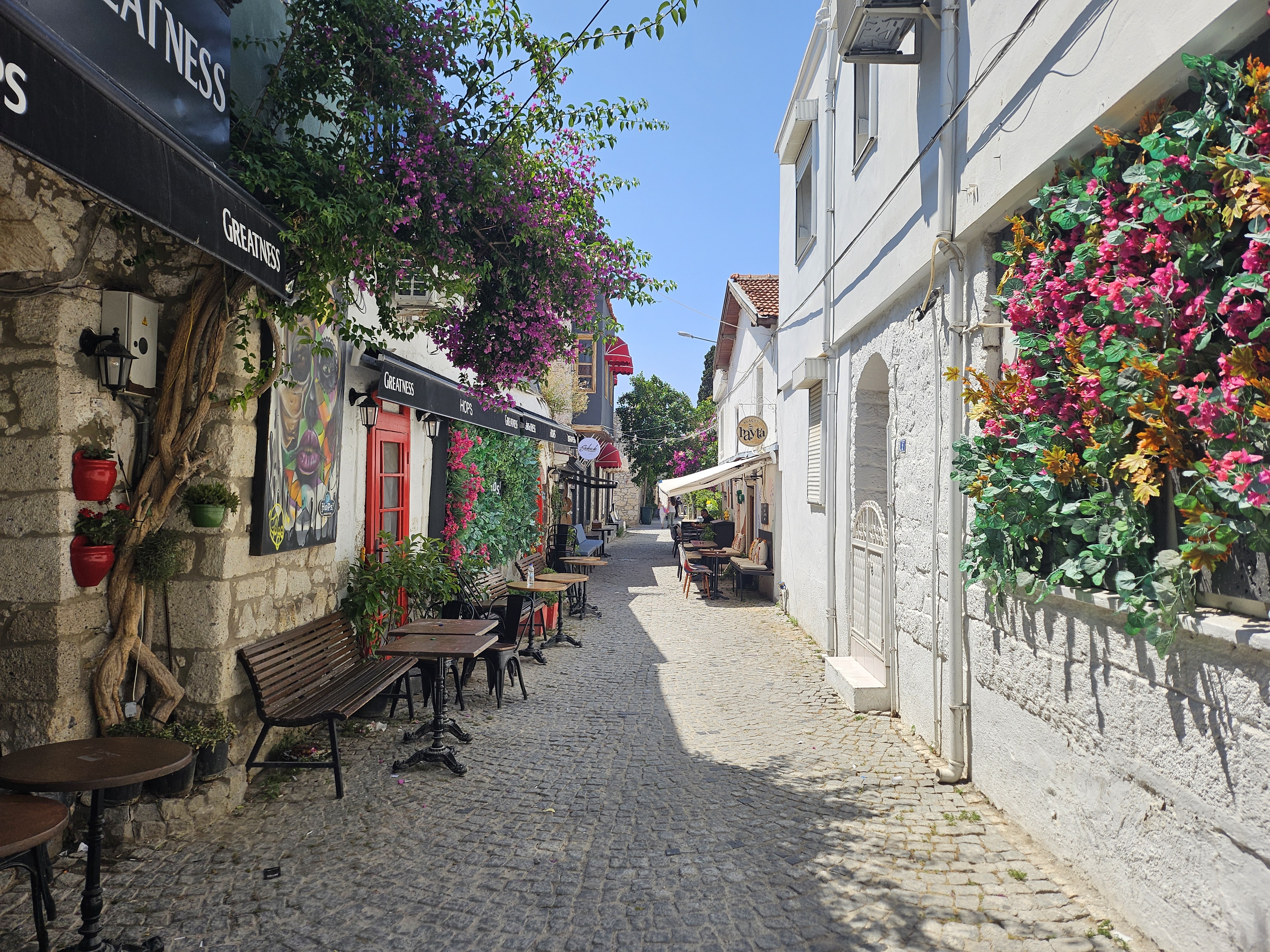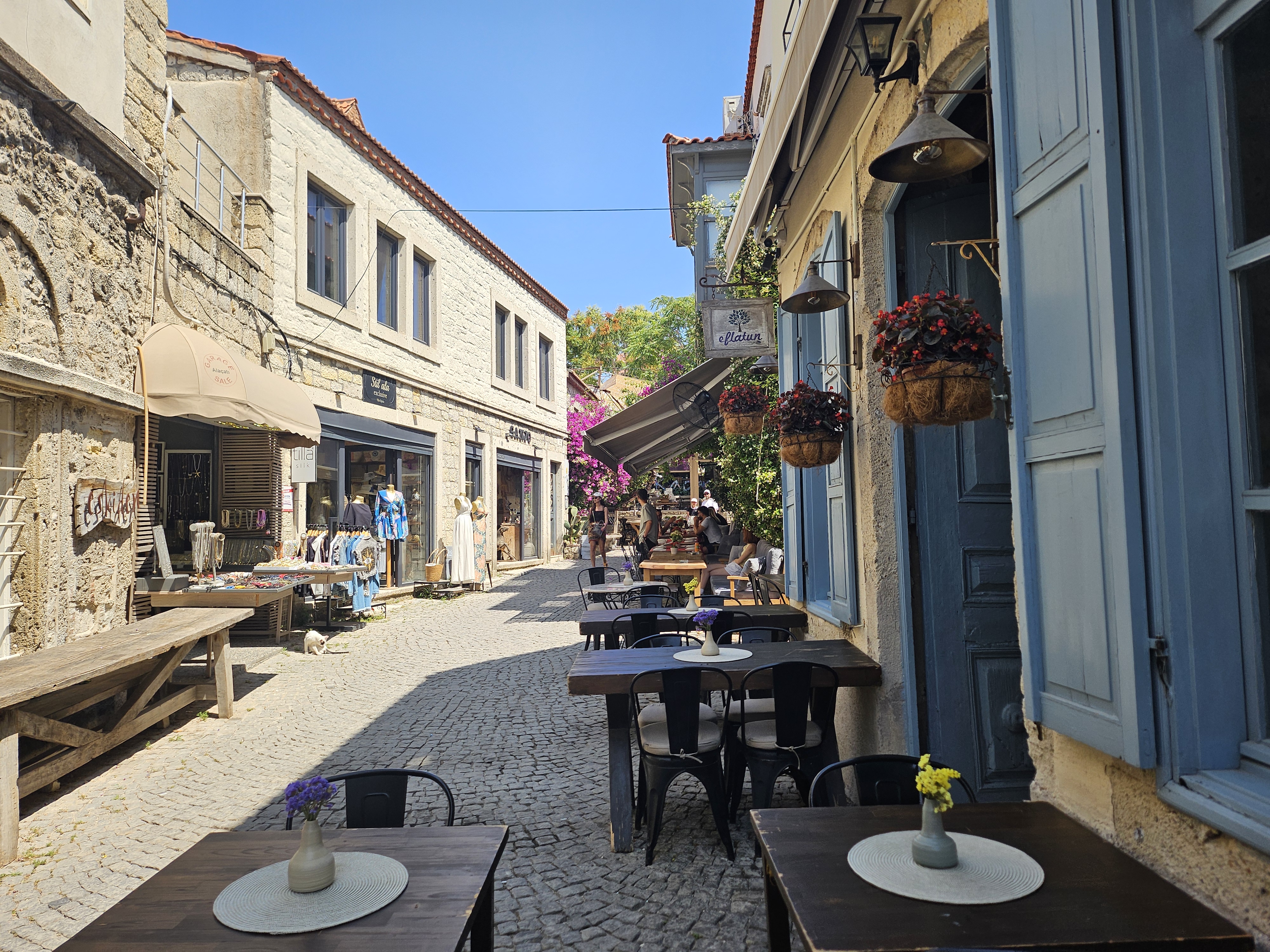 • 카페와 레스토랑: 세련되면서도 아늑한 분위기의 카페와 레스토랑들이 많습니다. 에게해 스타일의 신선한 해산물 요리와 튀르키예 전통 음식은 물론, 현대적인 퓨전 요리까지 다양하게 맛볼 수 있습니다. 특히 지역 와인과 올리브 오일 요리가 유명합니다.
