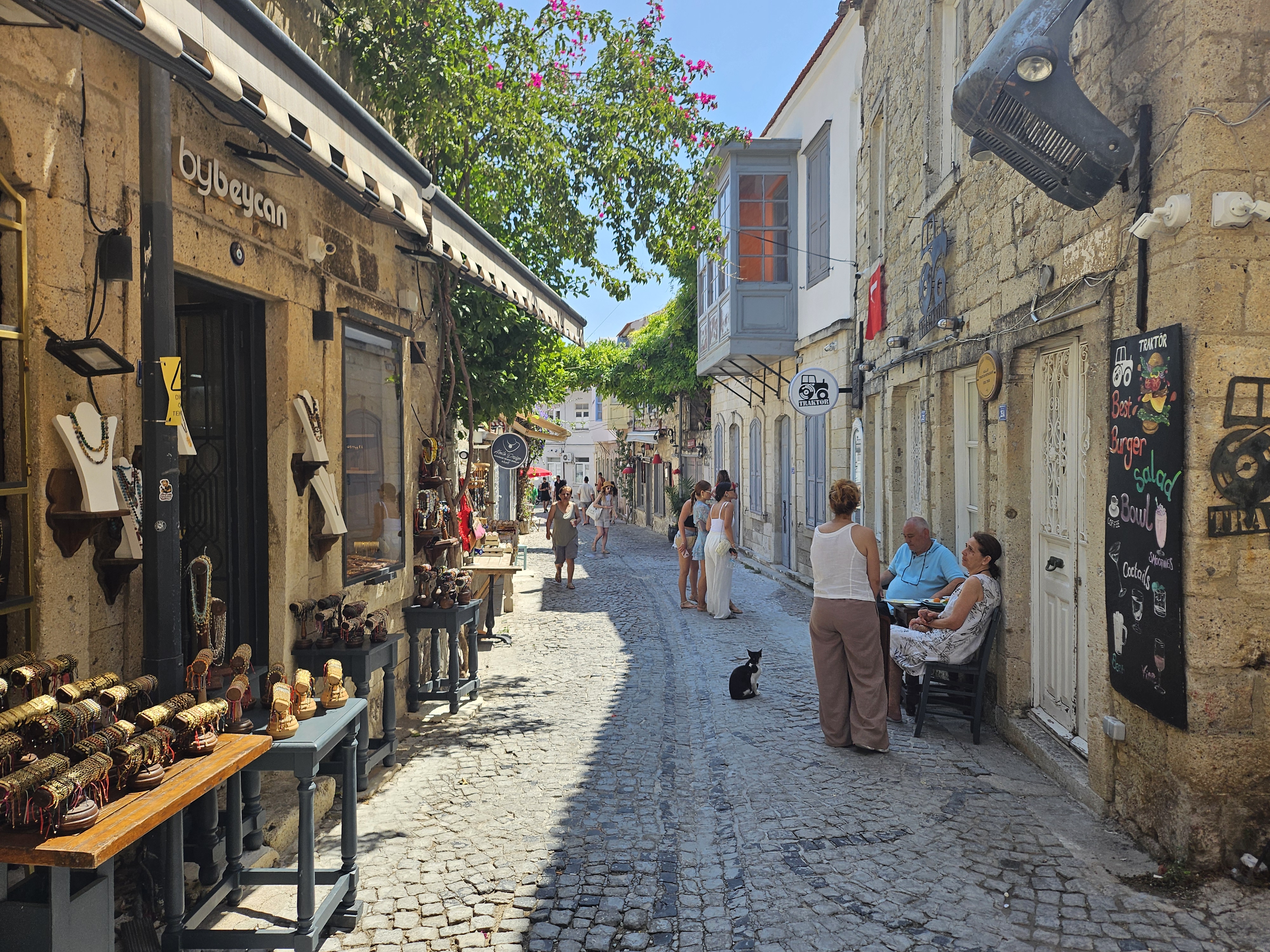 - 카페와 레스토랑: 세련되면서도 아늑한 분위기의 카페와 레스토랑들이 많습니다. 에게해 스타일의 신선한 해산물 요리와 튀르키예 전통 음식은 물론, 현대적인 퓨전 요리까지 다양하게 맛볼 수 있습니다. 특히 지역 와인과 올리브 오일 요리가 유명합니다.