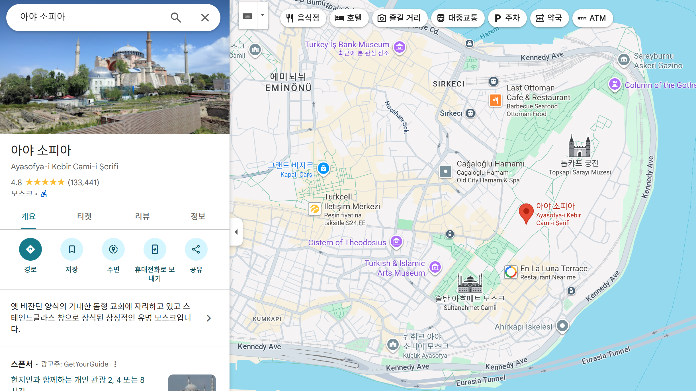 1. 아야 소피아는 어디에 있나요?