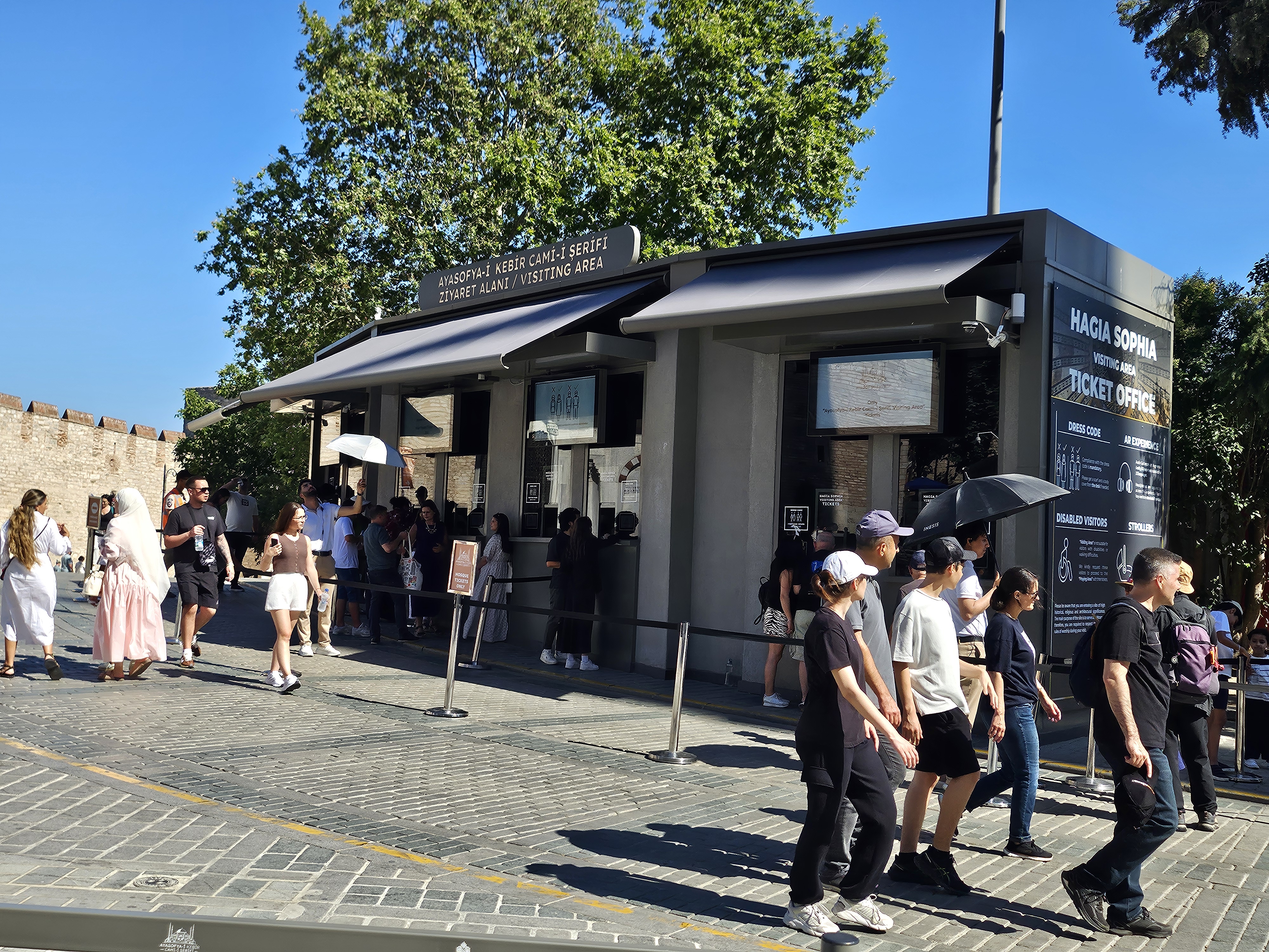 입장권 구매를 위해 아야 소피아 정문을 바라보고 오른쪽 벽을 끼고돌아 걷다 보면 매표소가 나왔습니다. 이니스는 아야 소피아 정면에 아야 소피아 + 아야 소피아 박물관을 함께 관람할 수 있는 표를 QR 코드를 찍어 직접 결재하였고, 입장 시 QR 코드를 직접 인식시키고 본격적인 아야 소피아를 들어갈 수 있었습니다.
