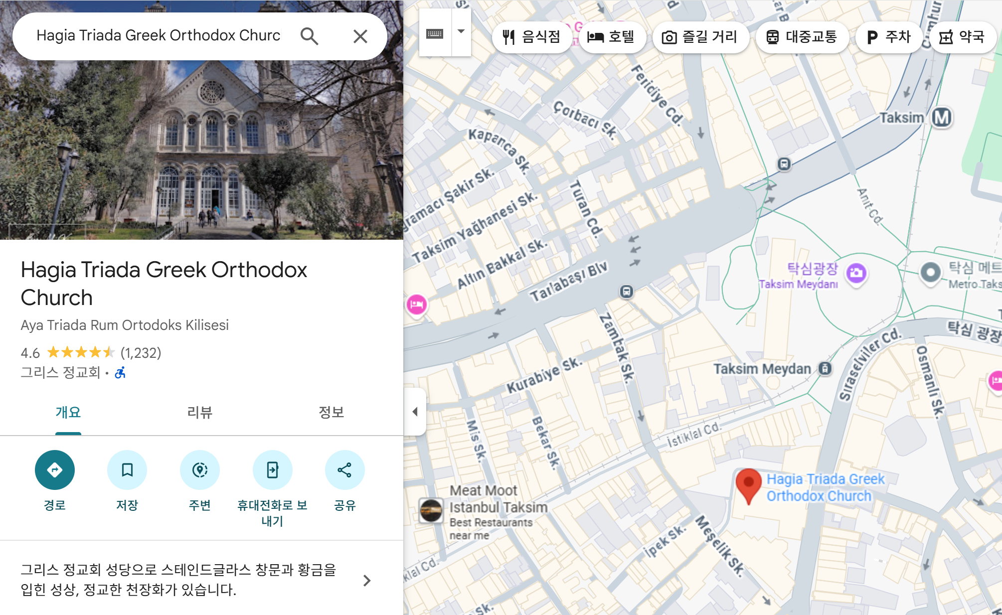 탁심 광장에서 첫발을 띄고 바로 마주한 곳은 '하기아 트리아다 그리스 정교회 성당'입니다.