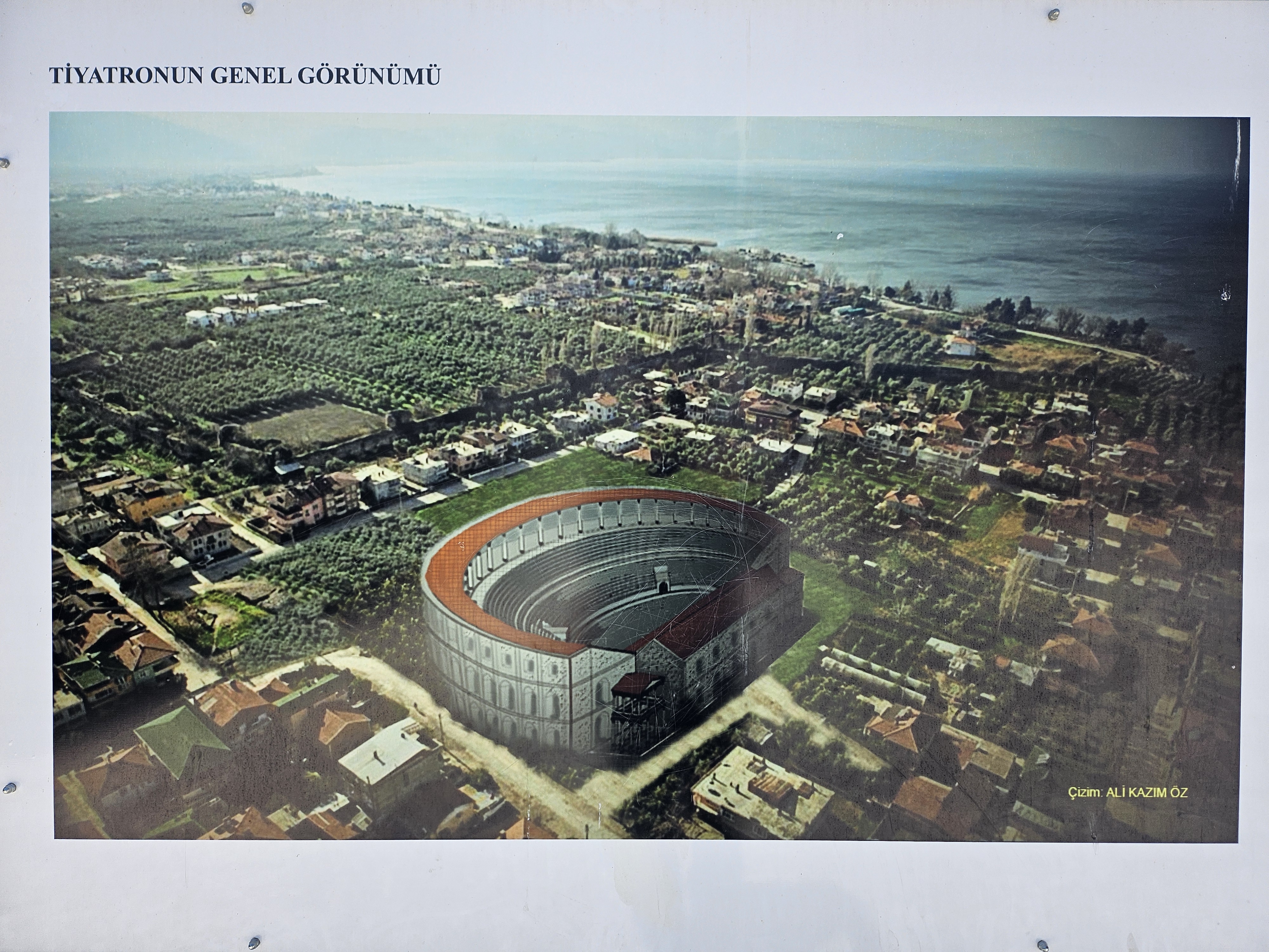 로마시대에 건축된 원형 극장 유적지는 이즈닉 도시의 중심가에 자리 잡고 있습니다. 이즈닉이라는 도시는 왼쪽으로는 거대한 담수호를 끼고 발전한 도시로 현재는 규모가 작지만 로마 시대의 큰 원형 극장 유적지가 있을 만큼 과거에는 큰 도시 중의 하나로 이해할 수 있습니다.