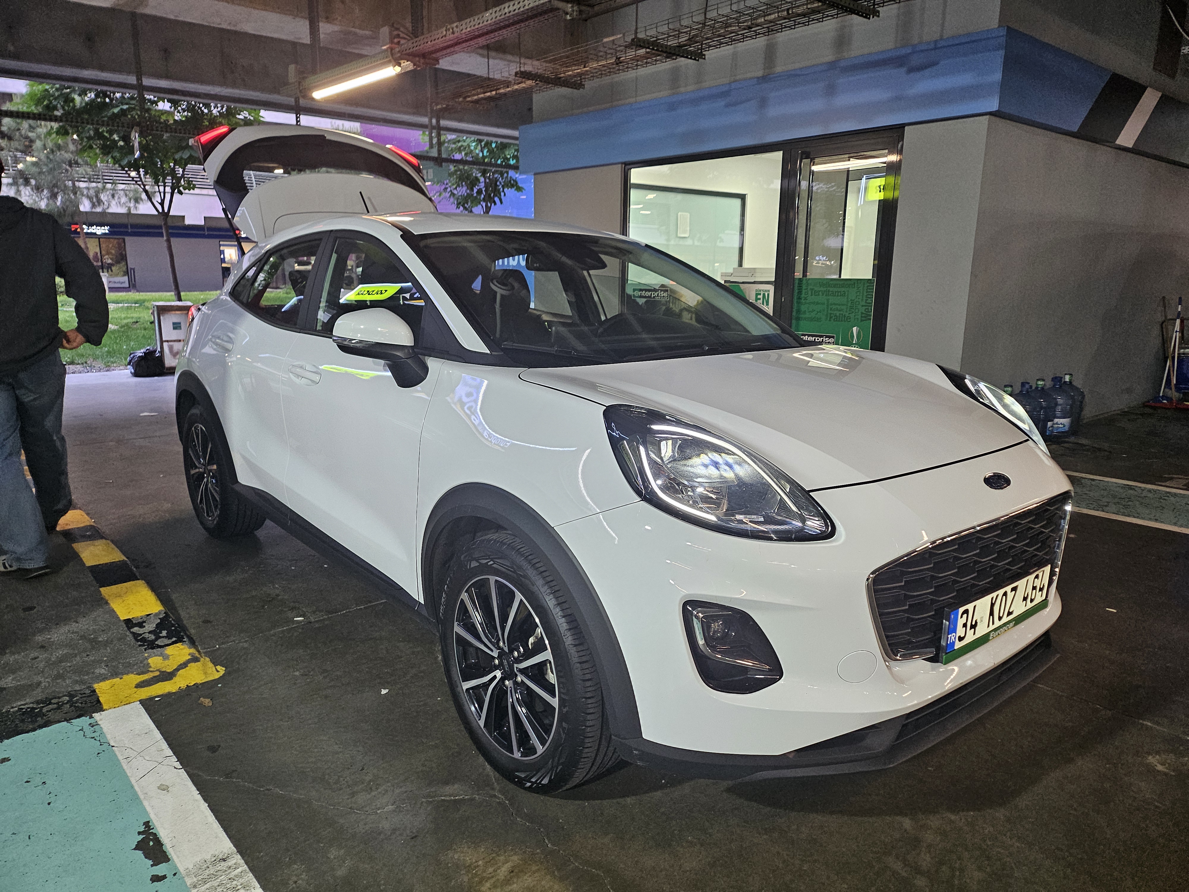 여느 렌터카 업체와 같이 공항 주차장 한편에 렌트 가능한 차량을 보관하고 있었고, 소개받은 차량인 Ford PUMA 차량을 보게 되었습니다. 작은 SUV 수준으로 오프로드 주행이 예상되는 출장이라 가장 적합한 선택지라고 생각했습니다. 적산거리가 25000km 수준으로 준 신차 컨디션으로 이해할 수 있었습니다.
