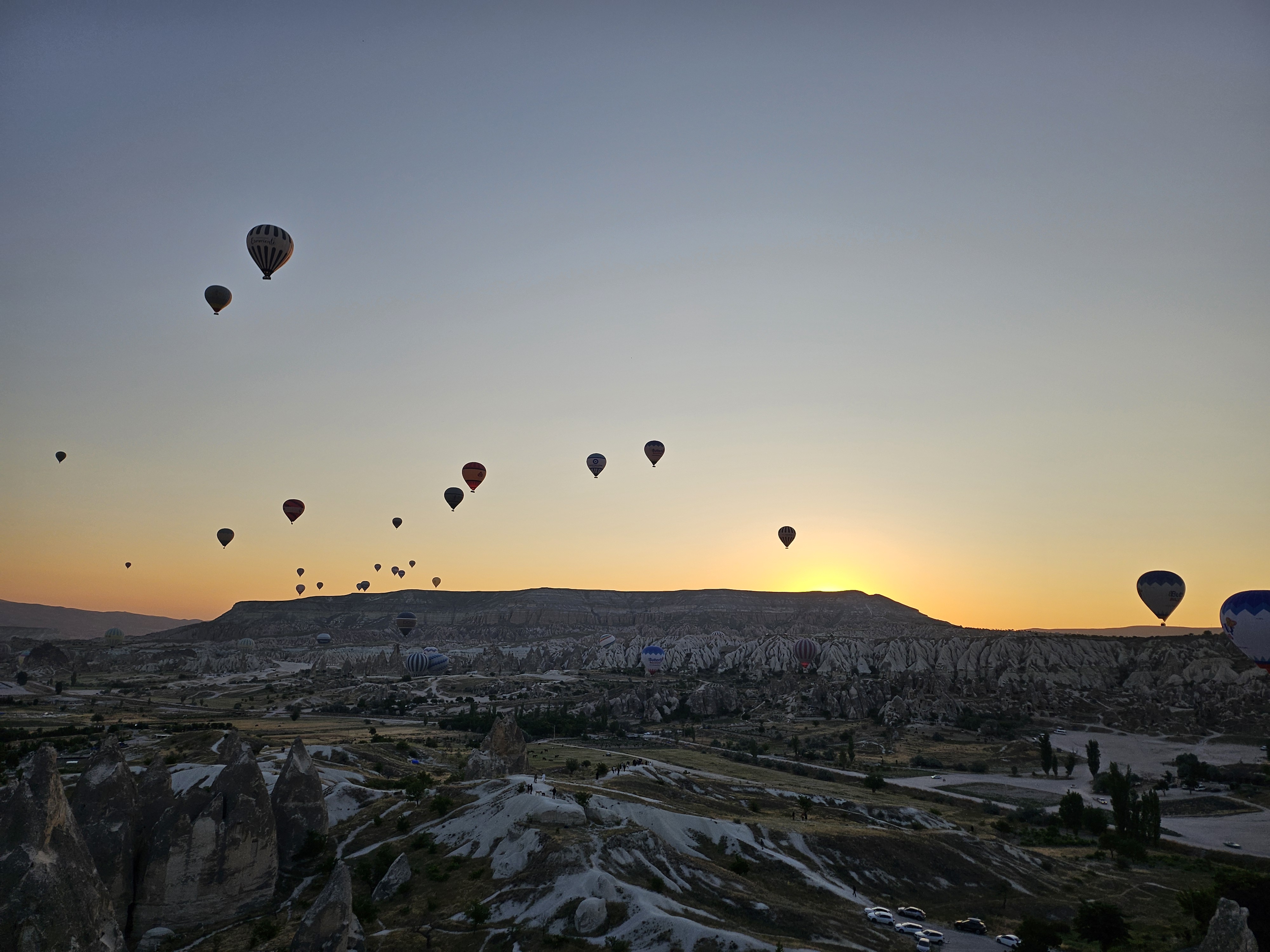 열기구 관련해서 검색 및 알아보니 보통 25~30만 원 선으로 확인을 할 수 있었습니다. 튀르키예의 큰 관광수입이다 보니 적지 않은 금액이었고, 최근 중국관광객이 늘어남에 따라 물가가 급 상승했다는 안타까운 소식도 접하게 되었습니다. 그래도 직접 타고 보는 것보다 멀리서 다양한 열기구와 주변 환경이 멋들어지게 어울리는 모습도 너무 인상적이었습니다. 몇몇 열기구는 바위와 관광객들이 많은 언덕을 오르락내리락해주는 멋진 운전을 보여주었고, 많은 사람들이 황홀한 광경에 빠져 넋을 놓고 있는 모습도 종종 보였습니다.