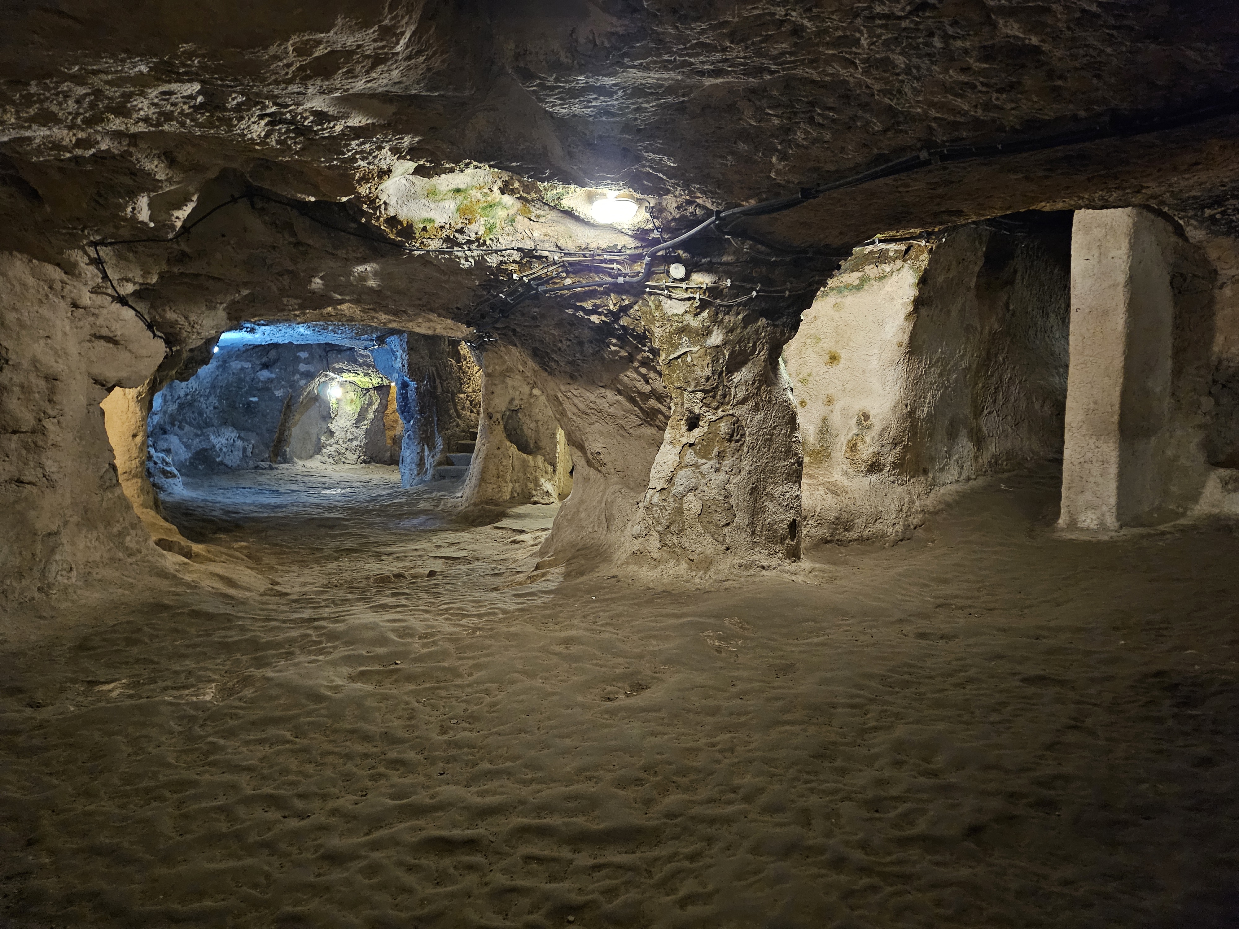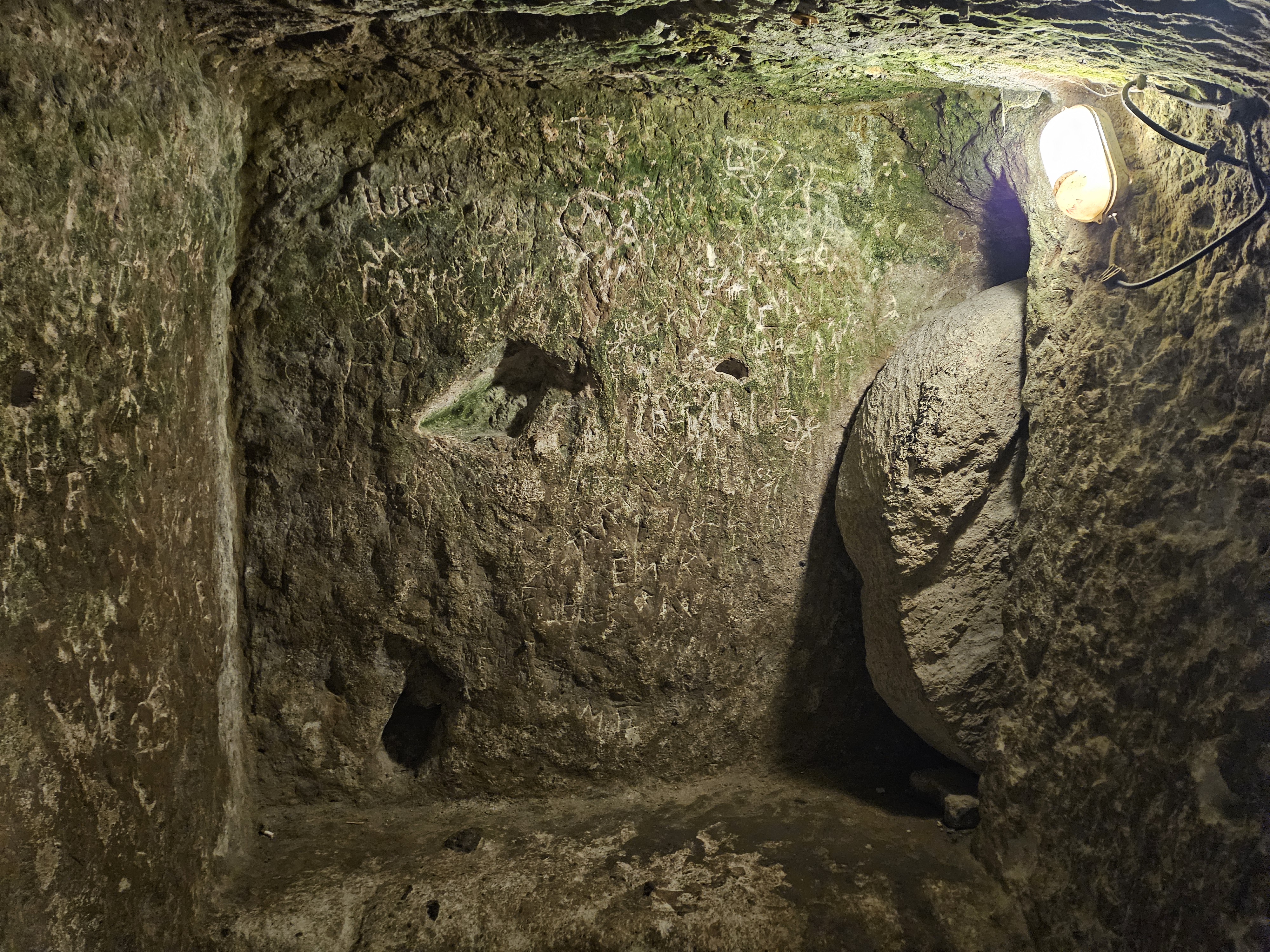지하도시를 돌아다니다 보면 곳곳에서 큰 원형 돌을 만나보게 됩니다. 그 안쪽으로 들어가서 보니 외부의 적이 침입했을 때 돌을 밀어 한 두 사람이 지나갈 수 있는 통로를 막아버리는 방어시설도 구비하고 있음을 보았습니다.