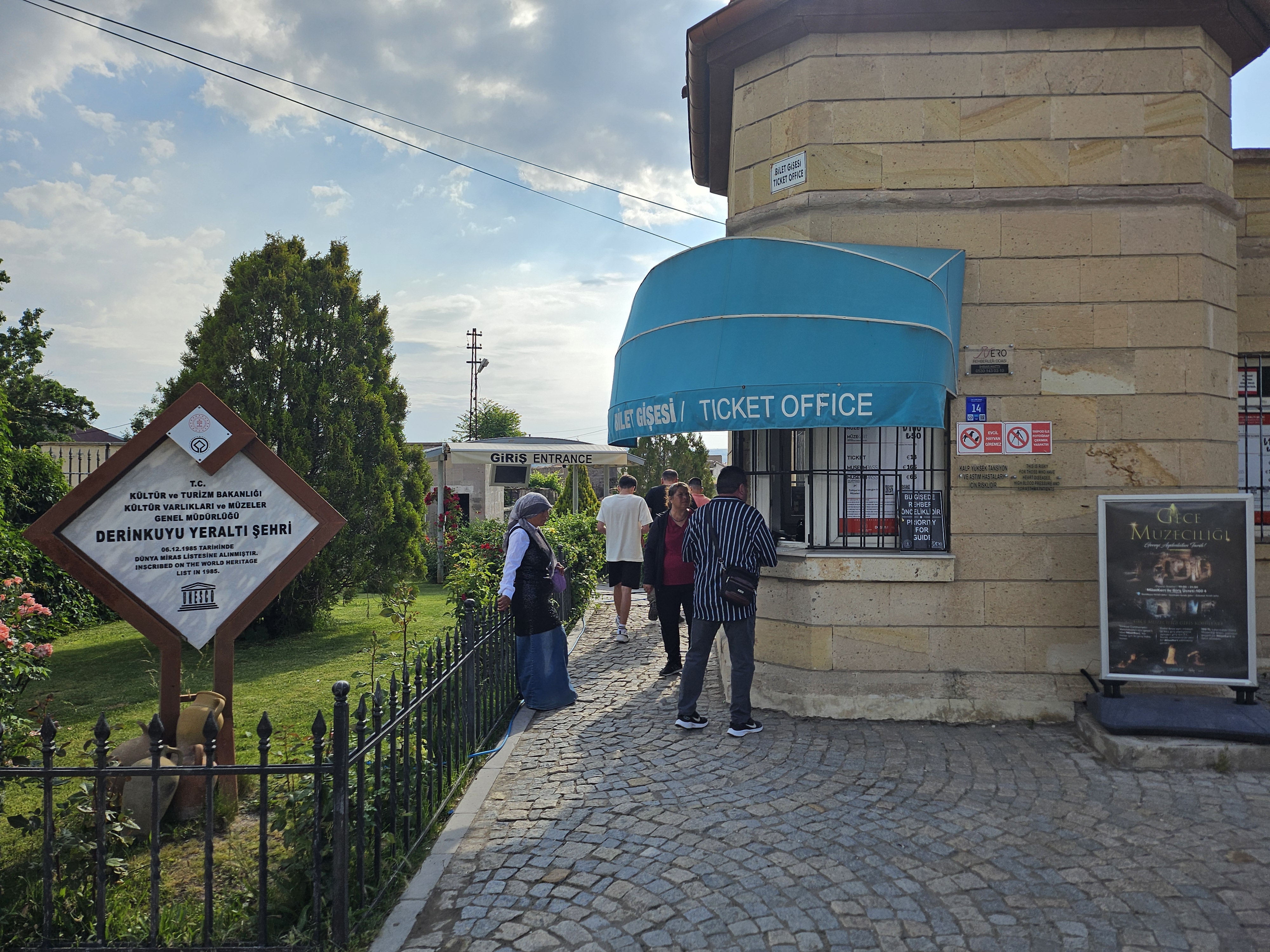 렌터카를 주차하고 넓은 광장 쪽으로 나오면 이곳의 지명인 '데린쿠유'를 만나볼 수 있습니다. 표를 구매할 수 있는 곳은 광장에서 눈을 돌려보면 쉽게 발견할 수 있습니다.