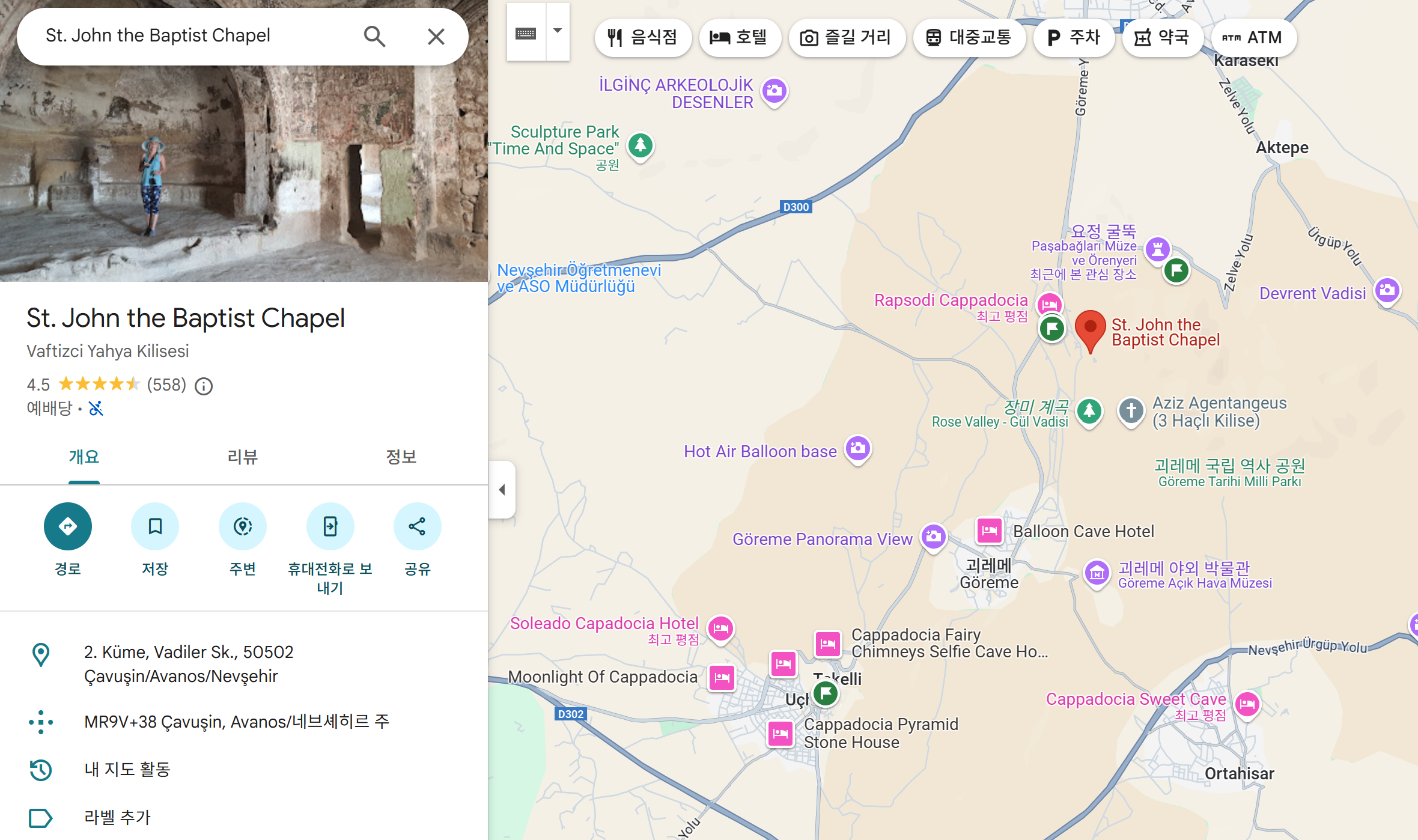 다른 사람들이 많이 가는 곳보다는 사람이 적은 곳을 위주로 찾아서 방문을 해보고 있습니다. 구글맵을 보면 괴레메 마을 주변에도 상당히 많은 관광포인트들이 있었습니다. 특히 가톨릭 신자로써 카파도키아 주변에는 로마의 박해를 피해 신앙생활 및 순교를 한 곳이 많아서 볼거리가 다양했다고 생각되었습니다.
