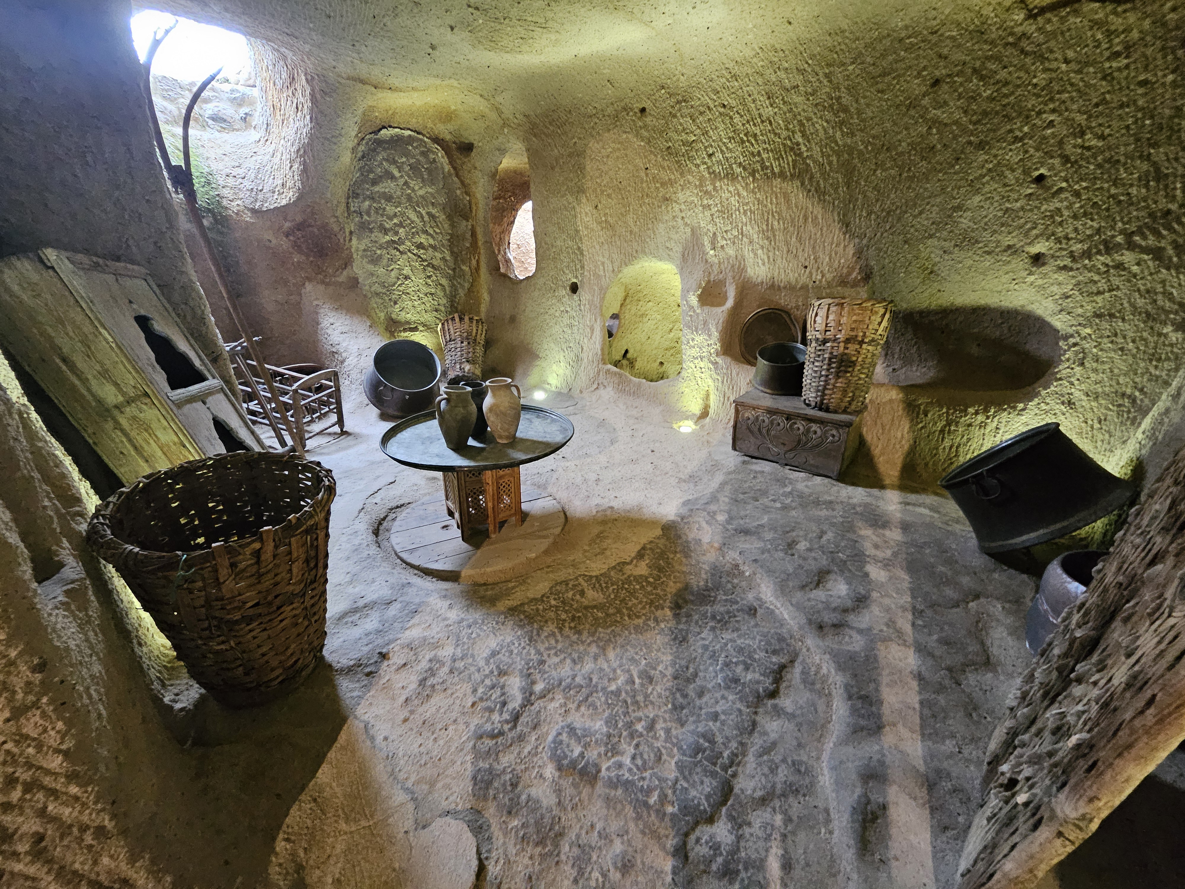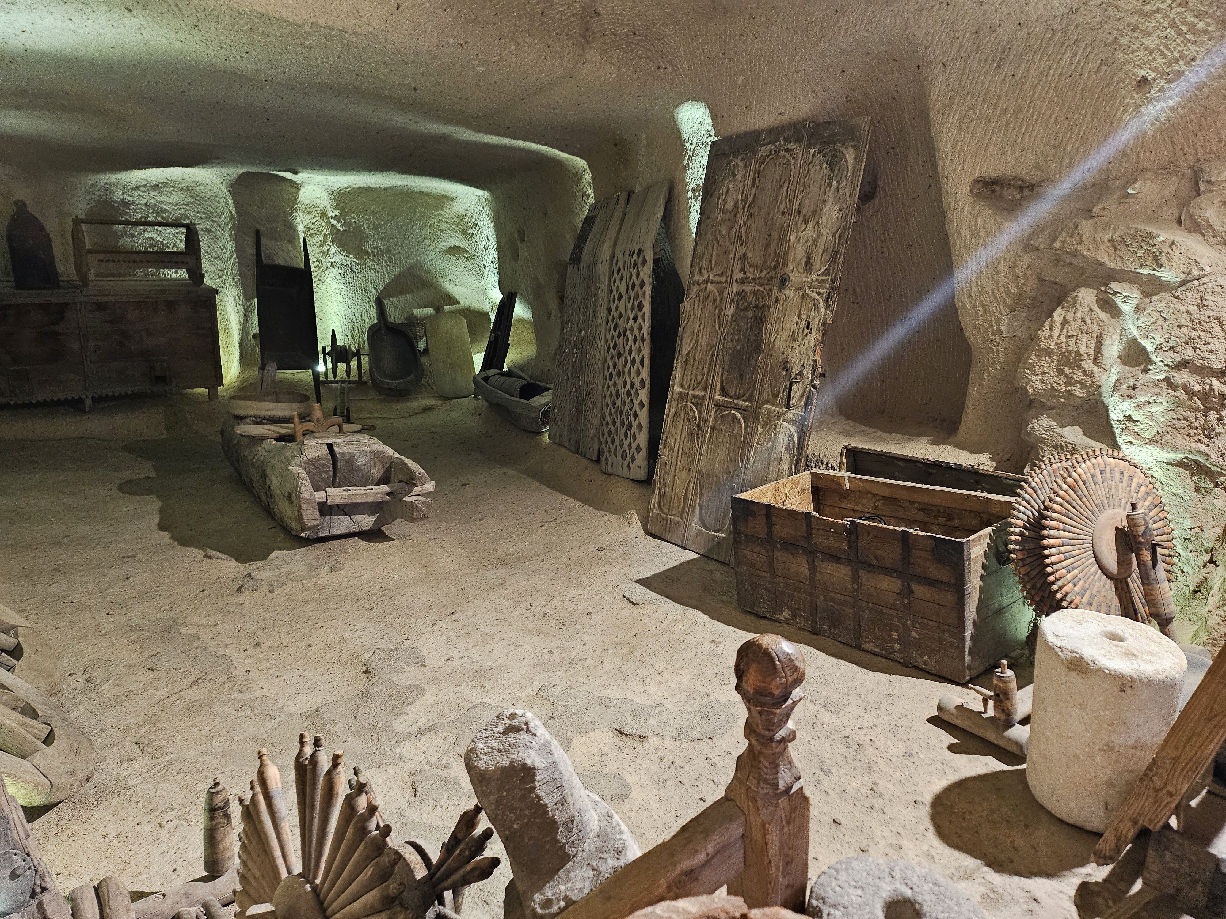입구를 지나면 우치히사르 성에서 거주하면서 사용했던 오래된 물건들을 관광객들이 볼 수 있게 전시해두고 있었습니다. 평소에는 평지에서 농사를 지으며 식량을 키웠을 것인데 이때 사용했던 물건으로 보이는 생활용품이 대부분이었습니다.