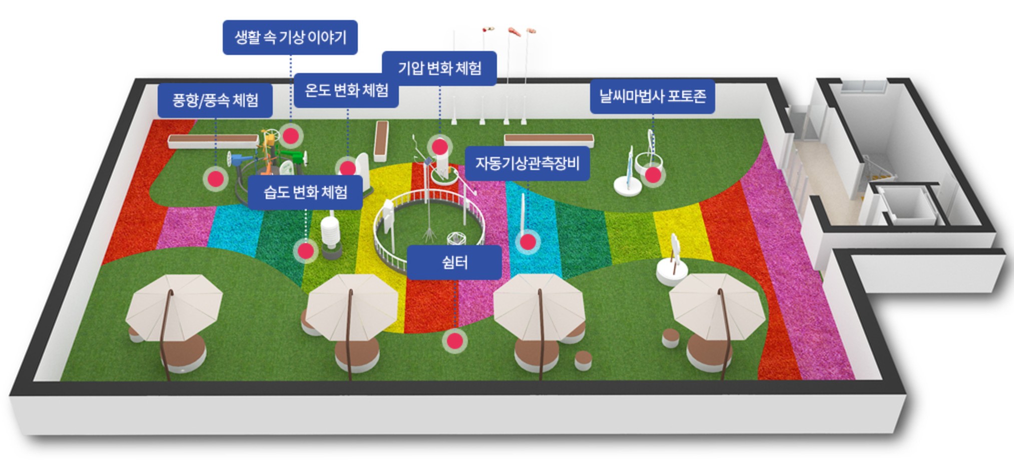 - 사계절 기상체험존: 대형 스크린으로 계절별 날씨 체험