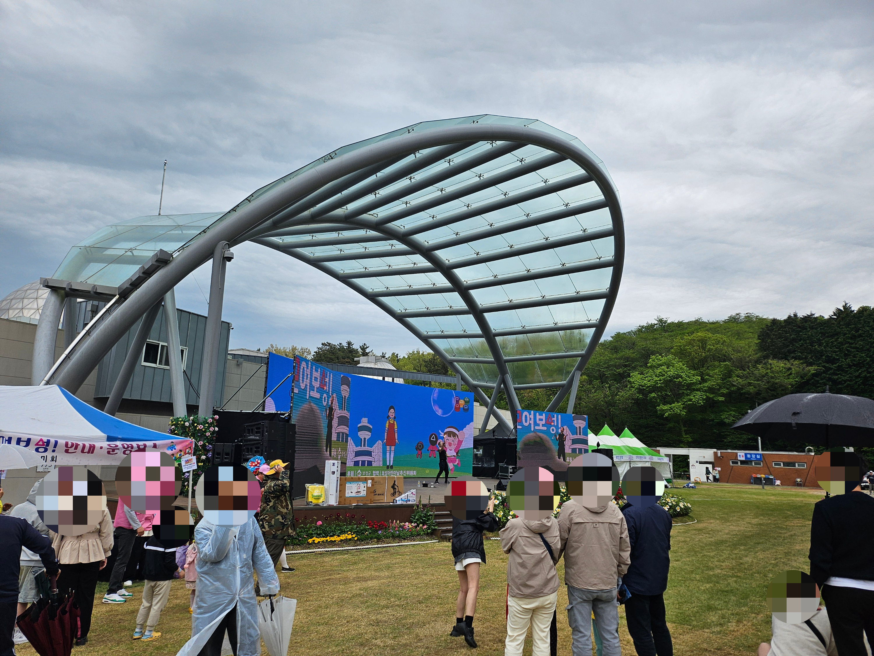 두 딸아이의 손을 꼭 잡고 다향아트밸리를 지나 K-티 문화체험관을 통과하고 청소년 수련원을 지나자마자 넓은 잔디광장과 비를 피할 수 있는 거대한 천막이 쳐져 있는 주 무대를 만나볼 수 있었습니다.