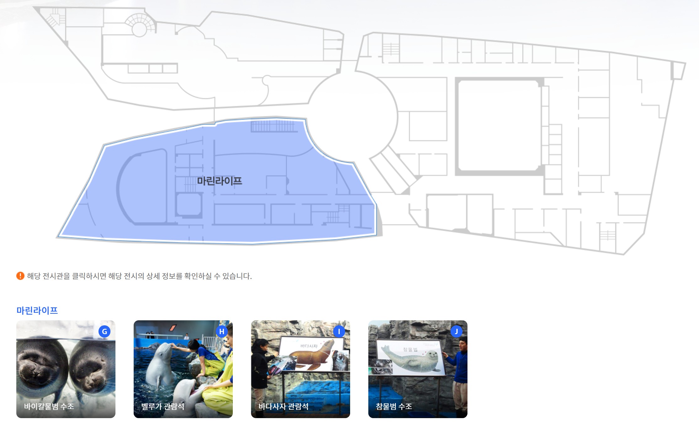 - 🎮 메인 수조: 대형 수조안의 다양한 바다생물을 만나볼 수 있는 공간입니다.