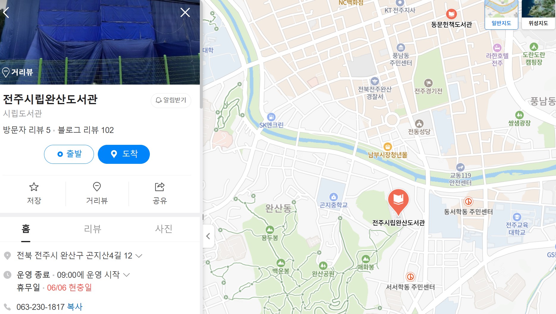 - 📚 완산도서관 (전주시립도서관 꽃심): 전북 전주시 완산구 전주천동로 270-21