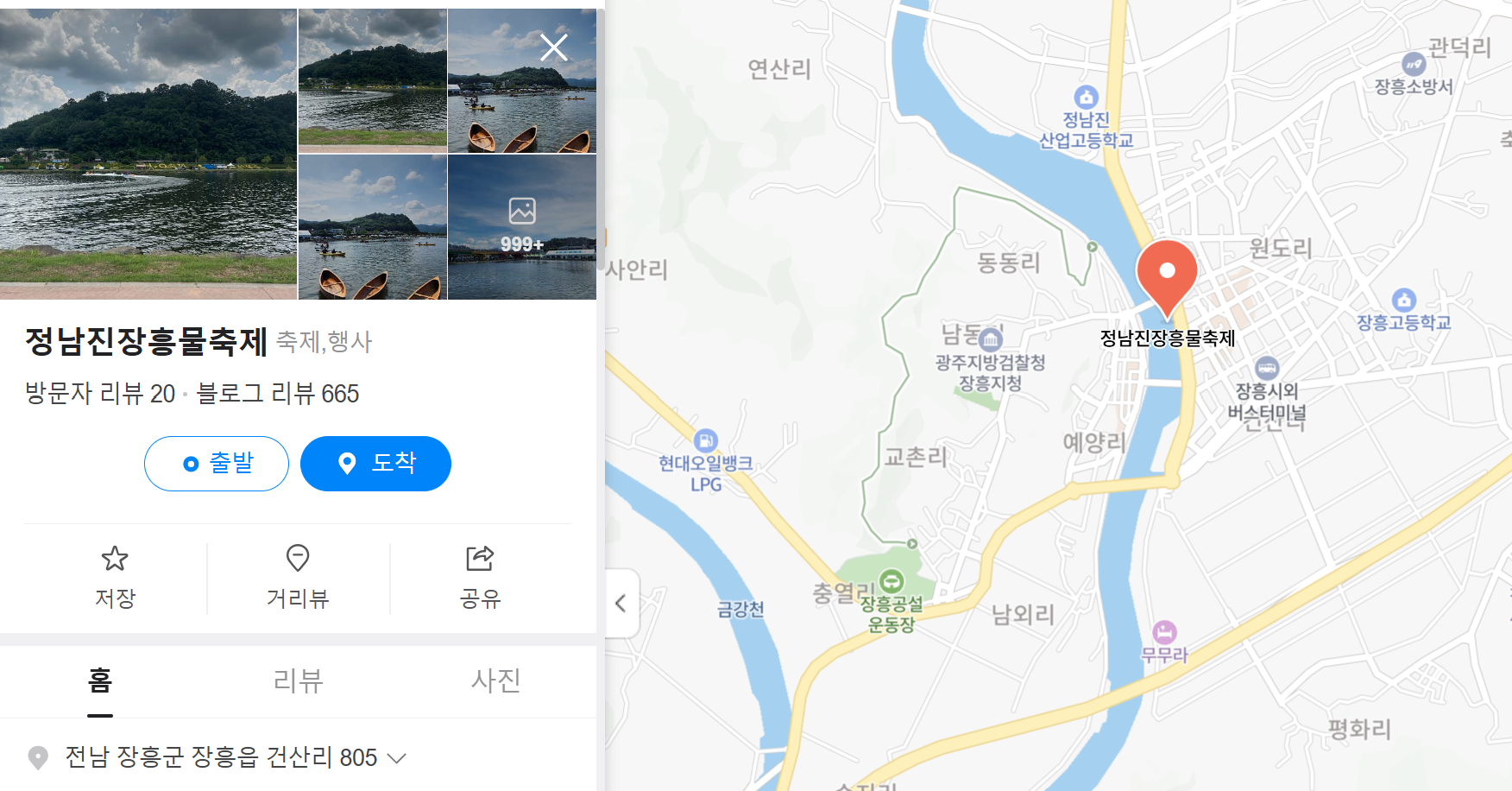 - 정확한 주소: 전라남도 장흥군 장흥읍 건산리 805 (탐진강 메인 축제장 기준)