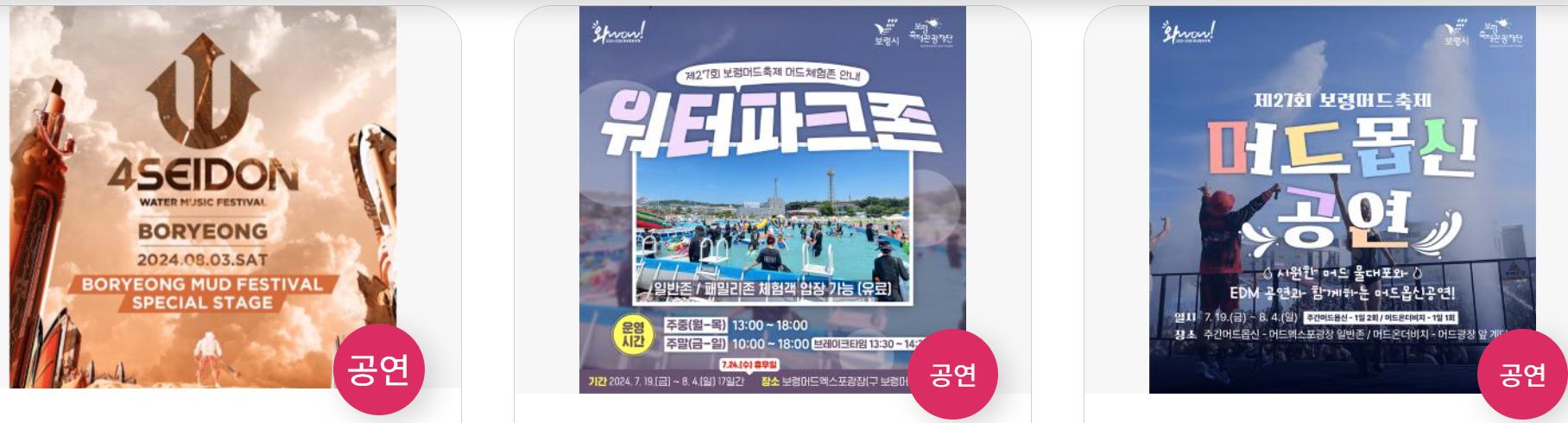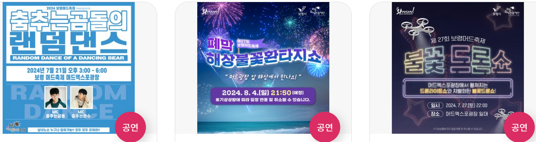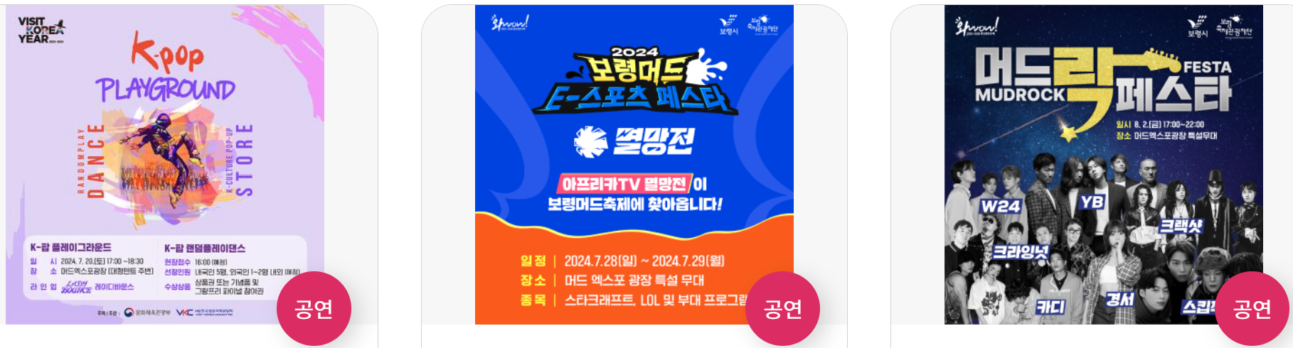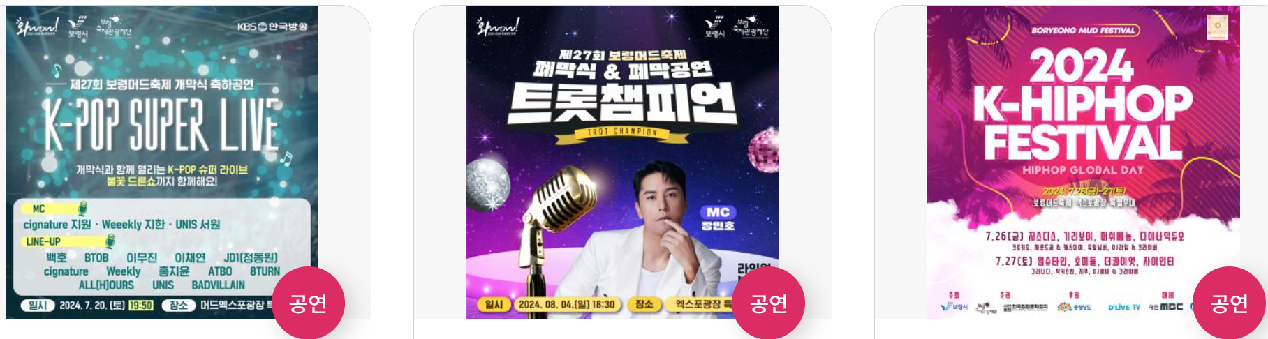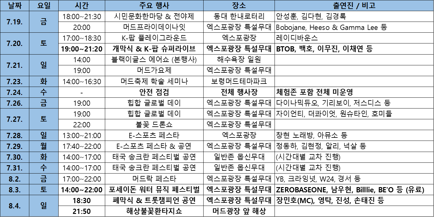 • 행사장소: 대천해수욕장 일원 (체험존/주공연장 - 보령머드엑스포광장)